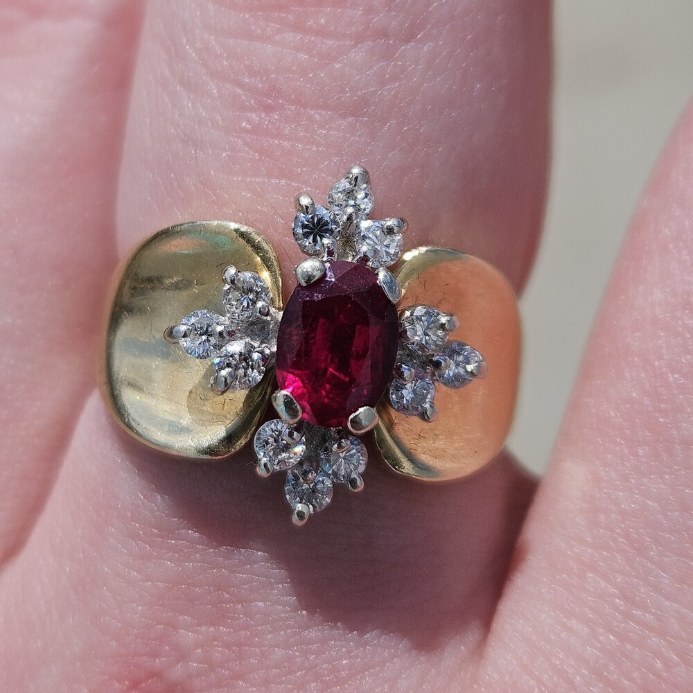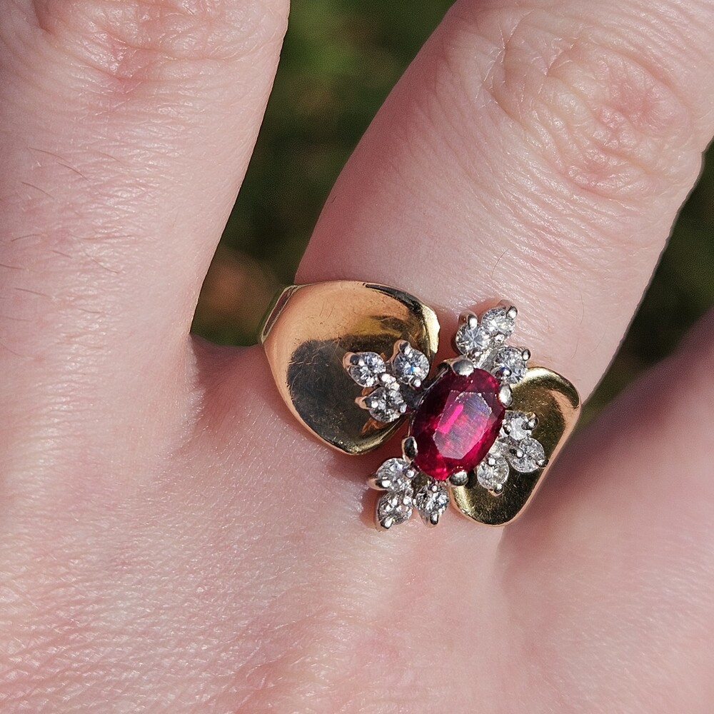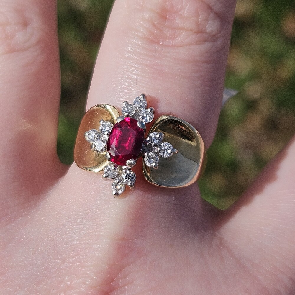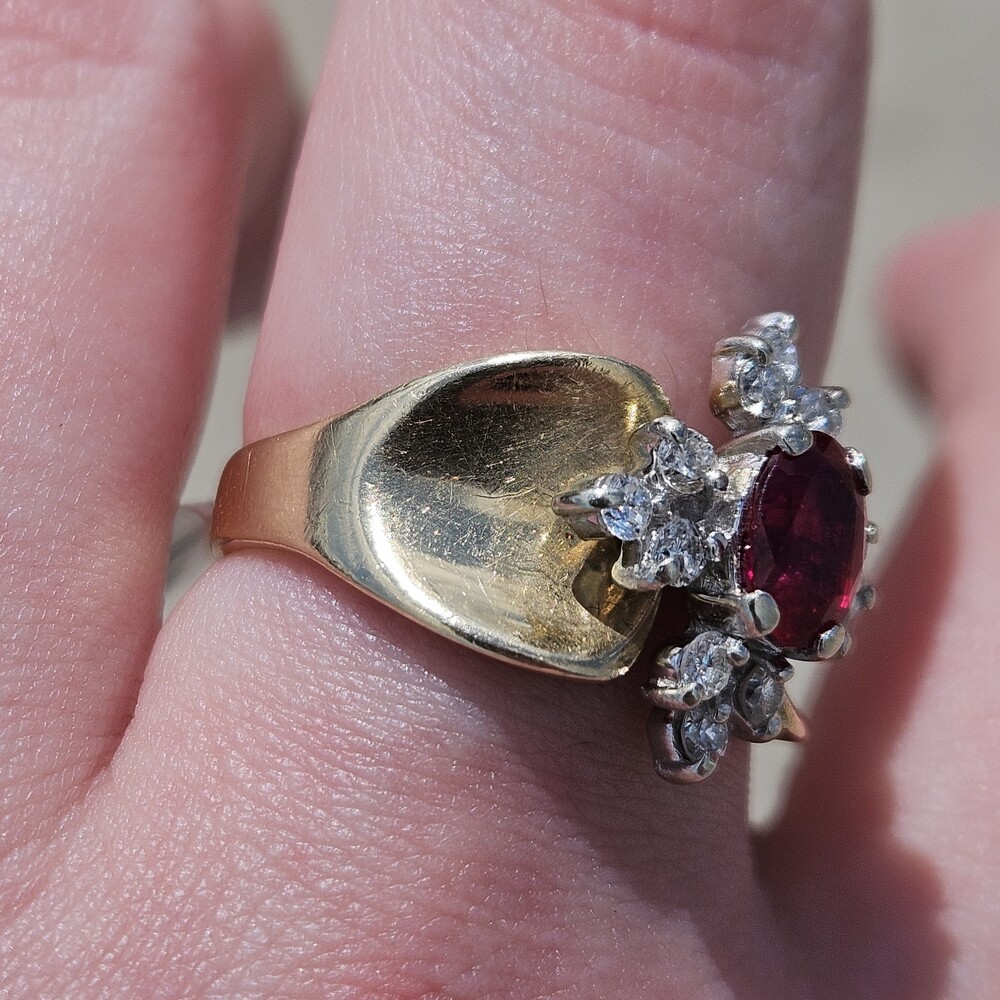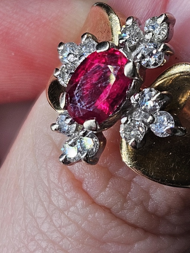One 14KT Yellow Gold Ruby & Diamond Ring