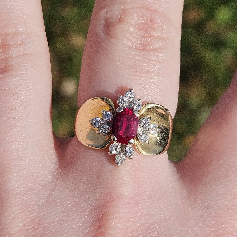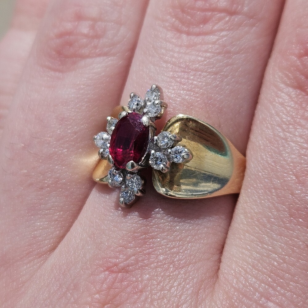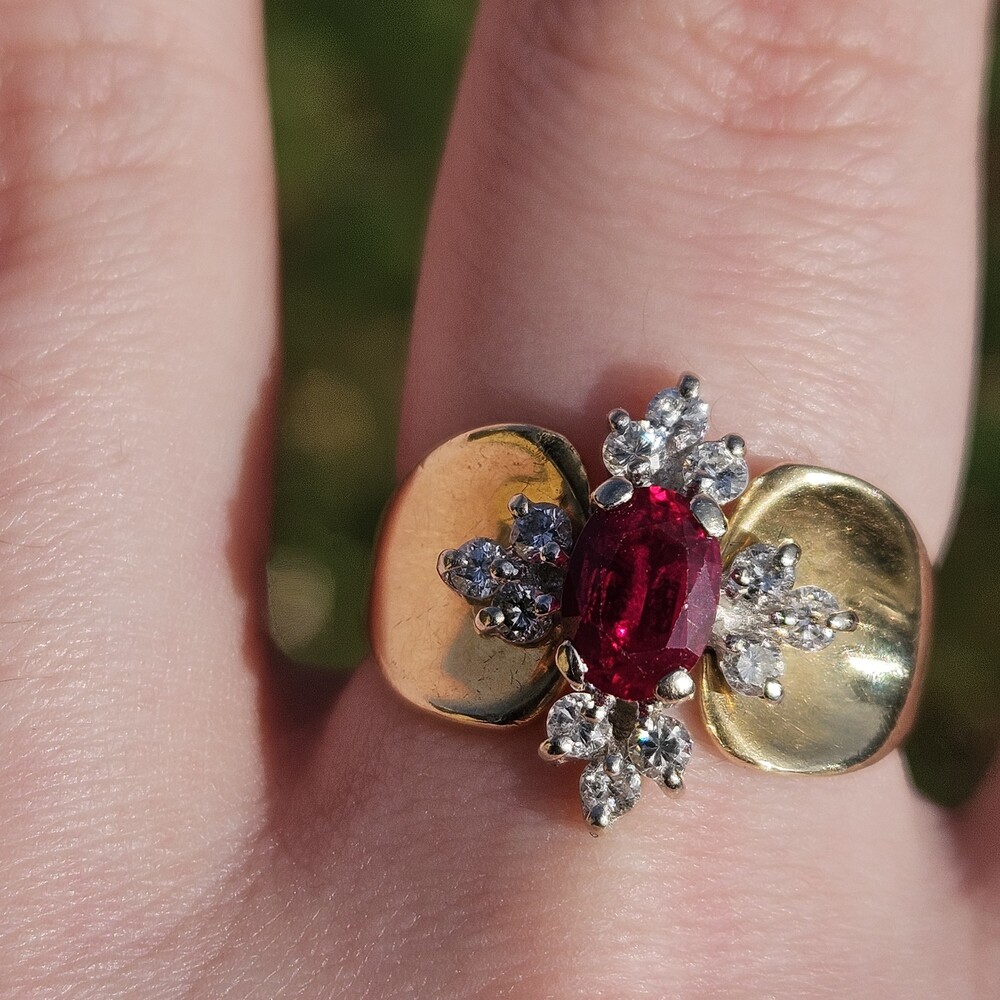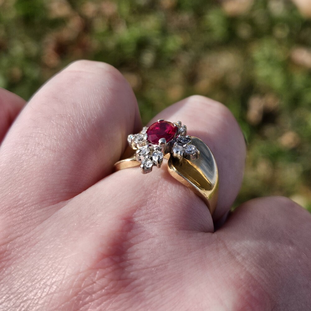 One 14KT Yellow Gold Ruby & Diamond Ring