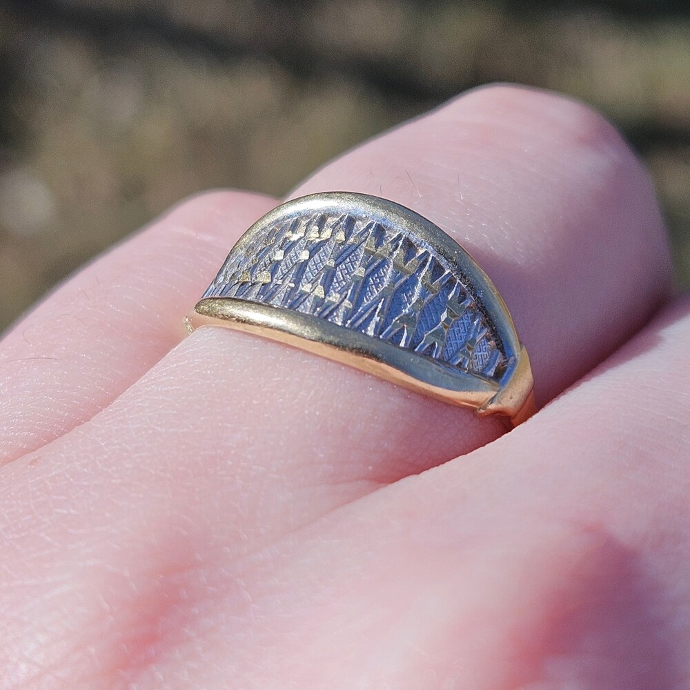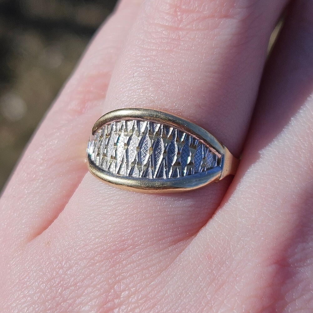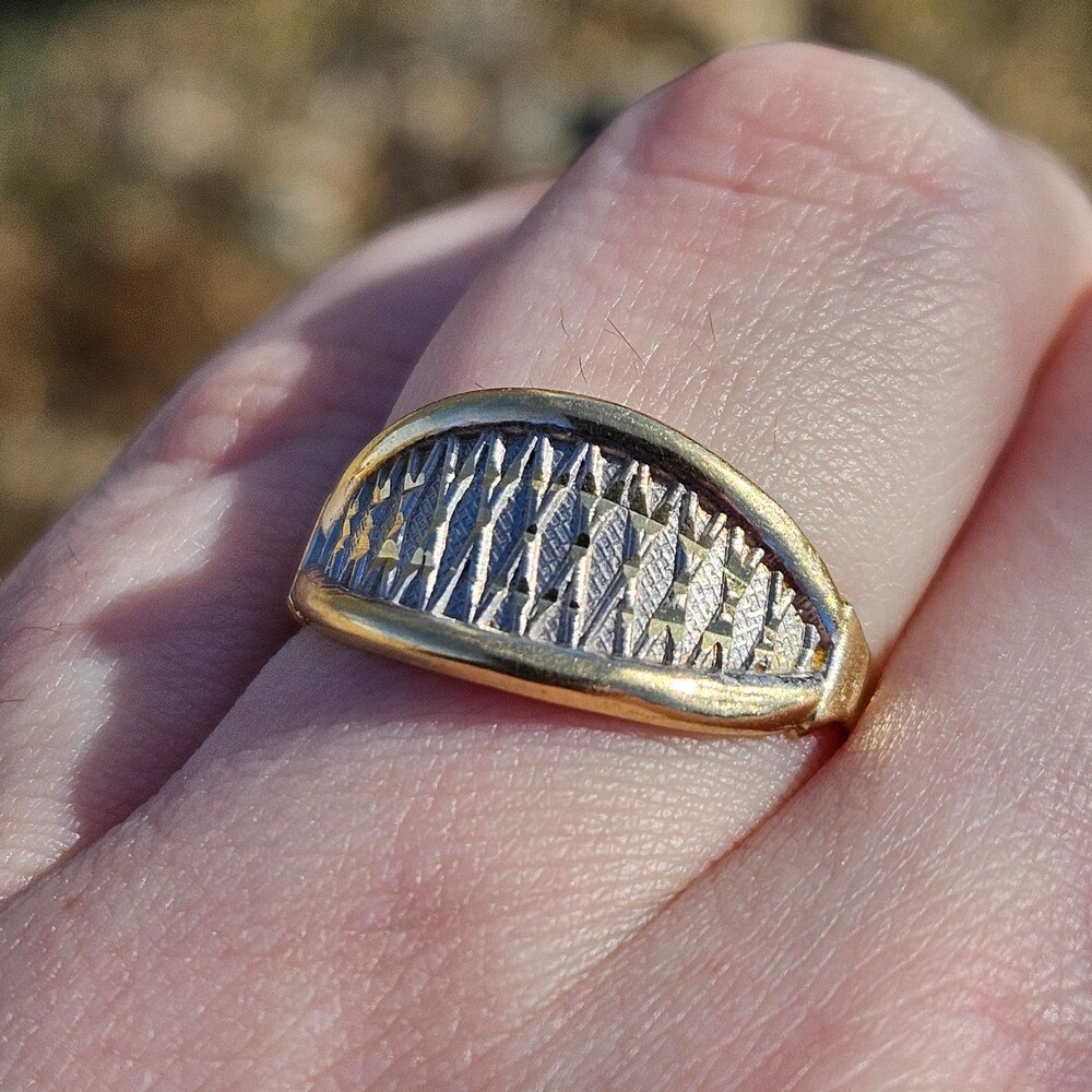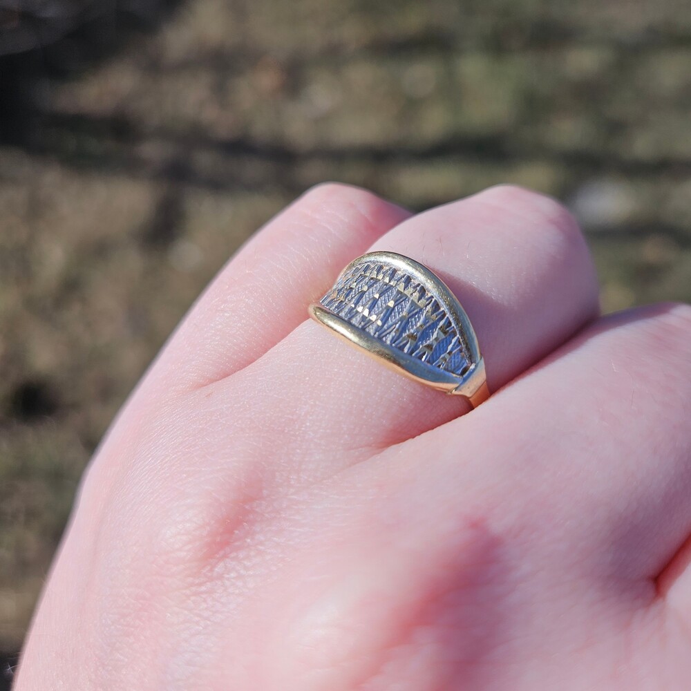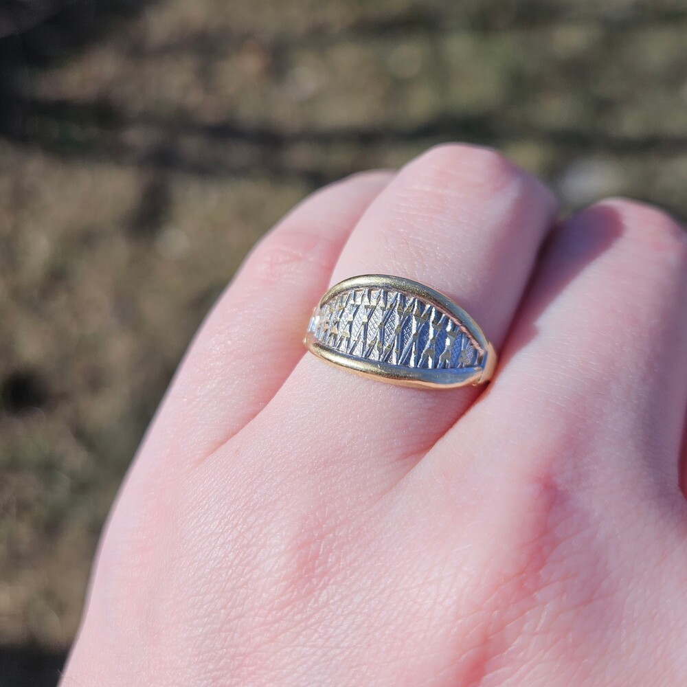 14K Yellow & White Gold Art Deco Eye Shaped Statement Ring Size 8