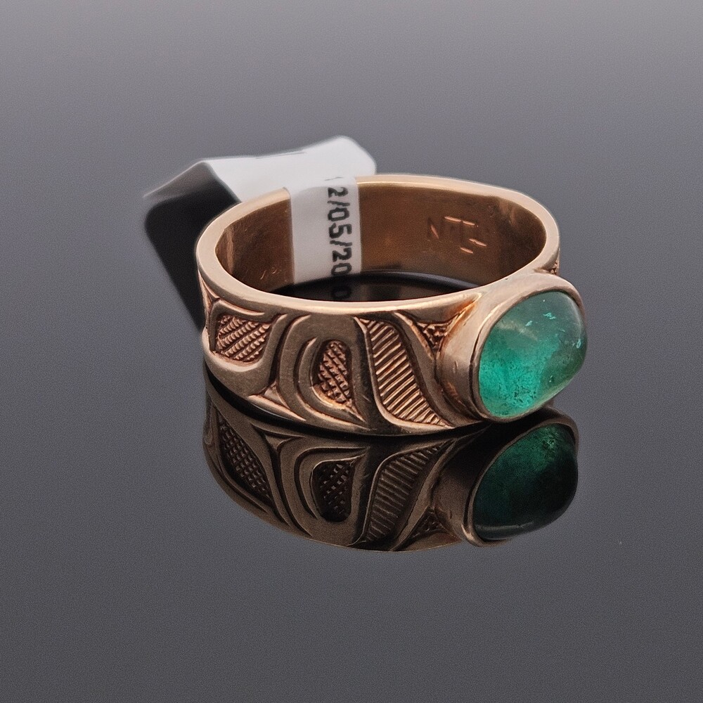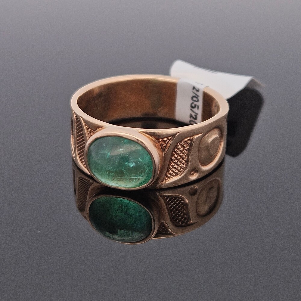 - Center Stone Shape/Size: Cabochon Natural Emerald 7x10mm