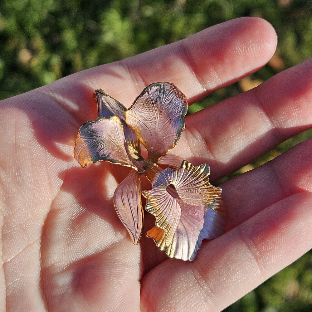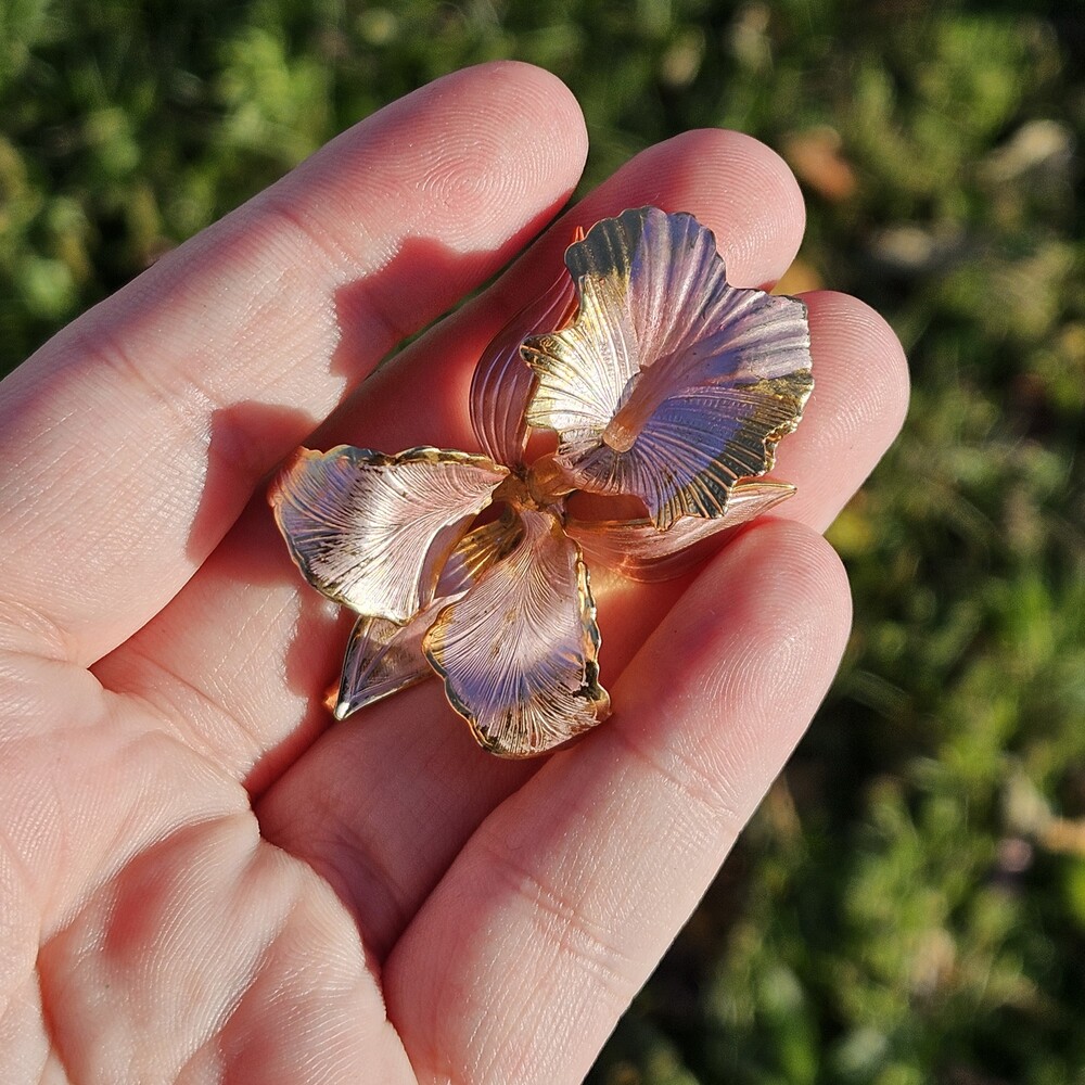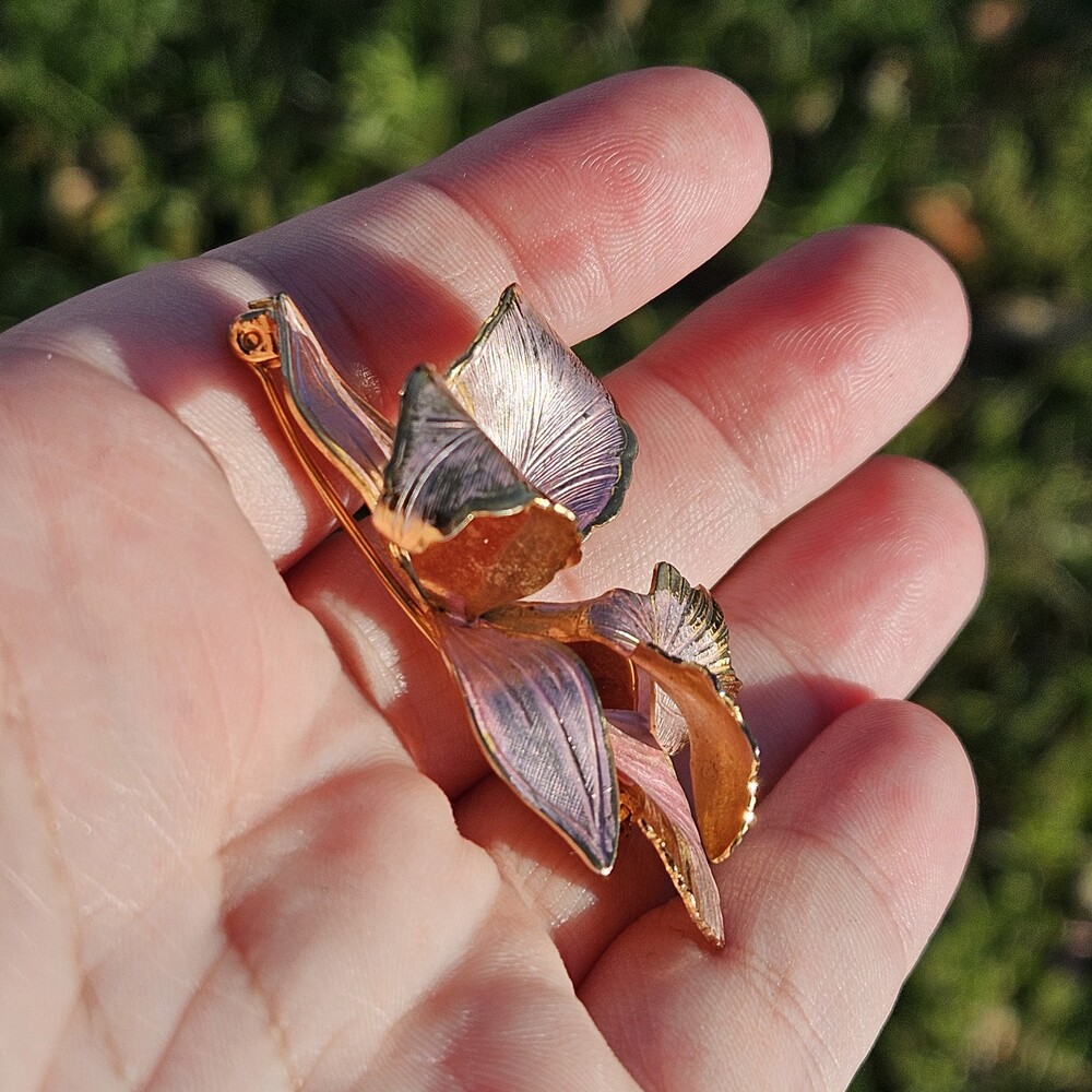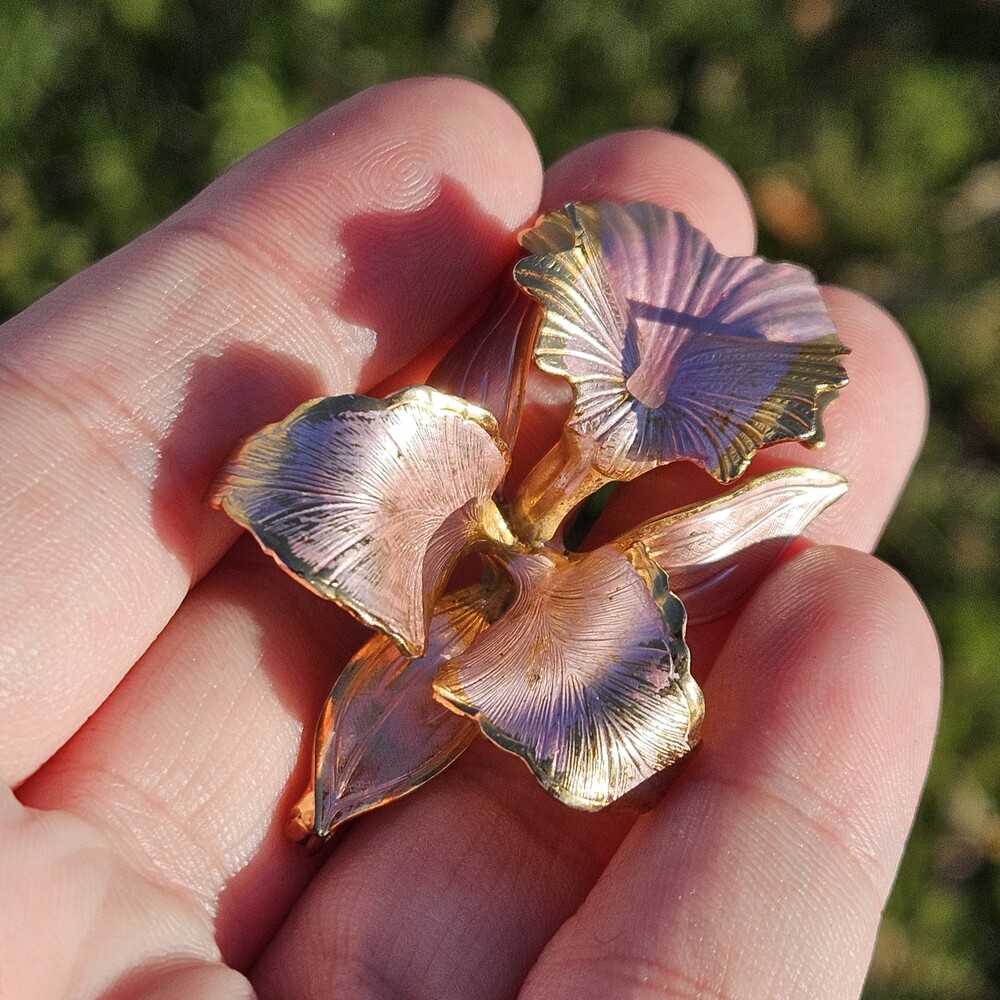 1982 Cerrito Gold Tone Pink Cherry Blossom Flower Brooch Pin 2x1.25 inches
