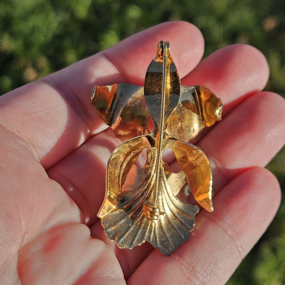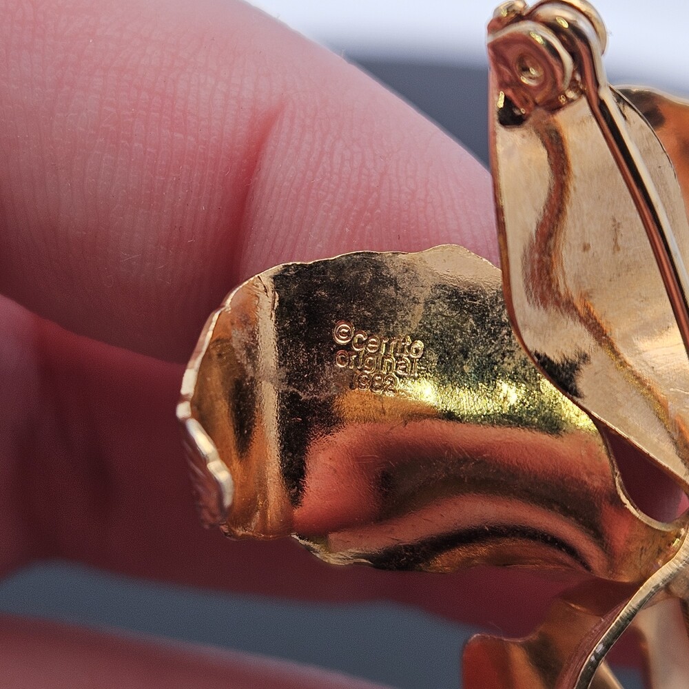 1982 Cerrito Gold Tone Pink Cherry Blossom Flower Brooch Pin 2x1.25 inches | Money and More