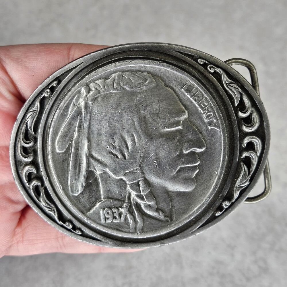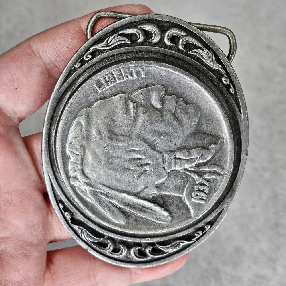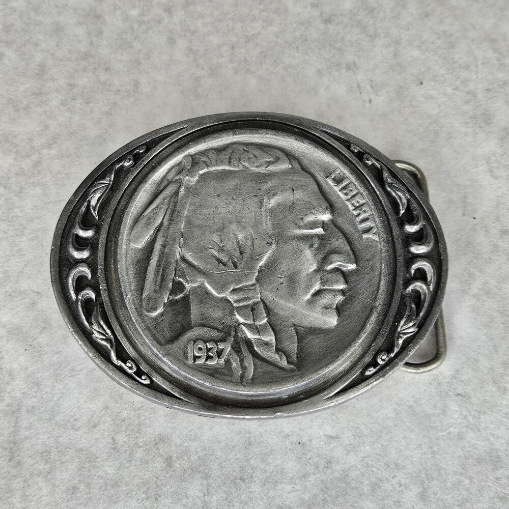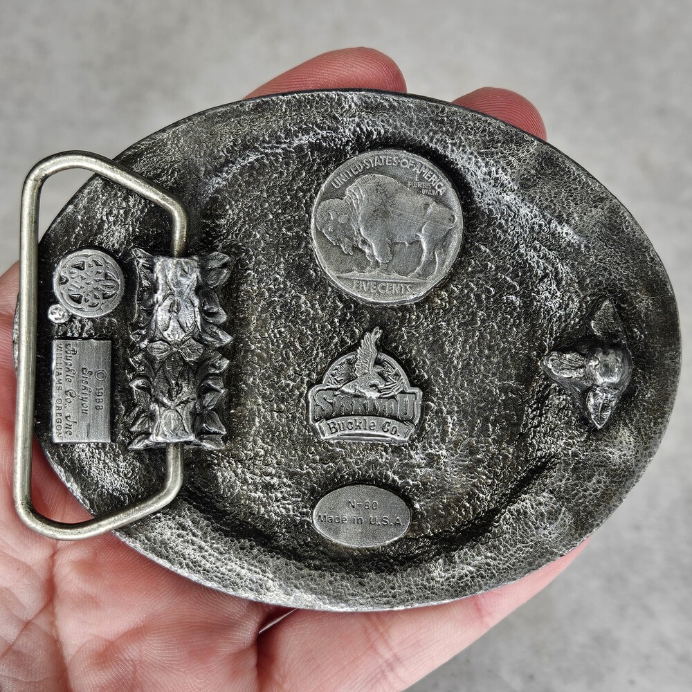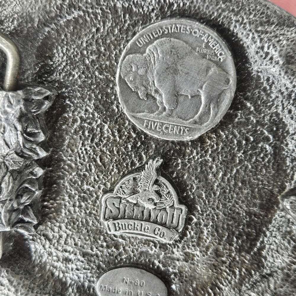 1988 Siskiyou Belt Buckle Co Buffalo Nickel Indian Native American Head Liberty | Money and More