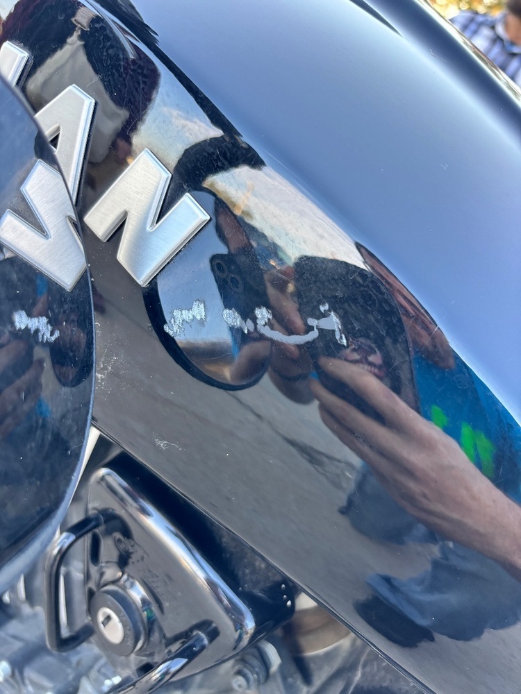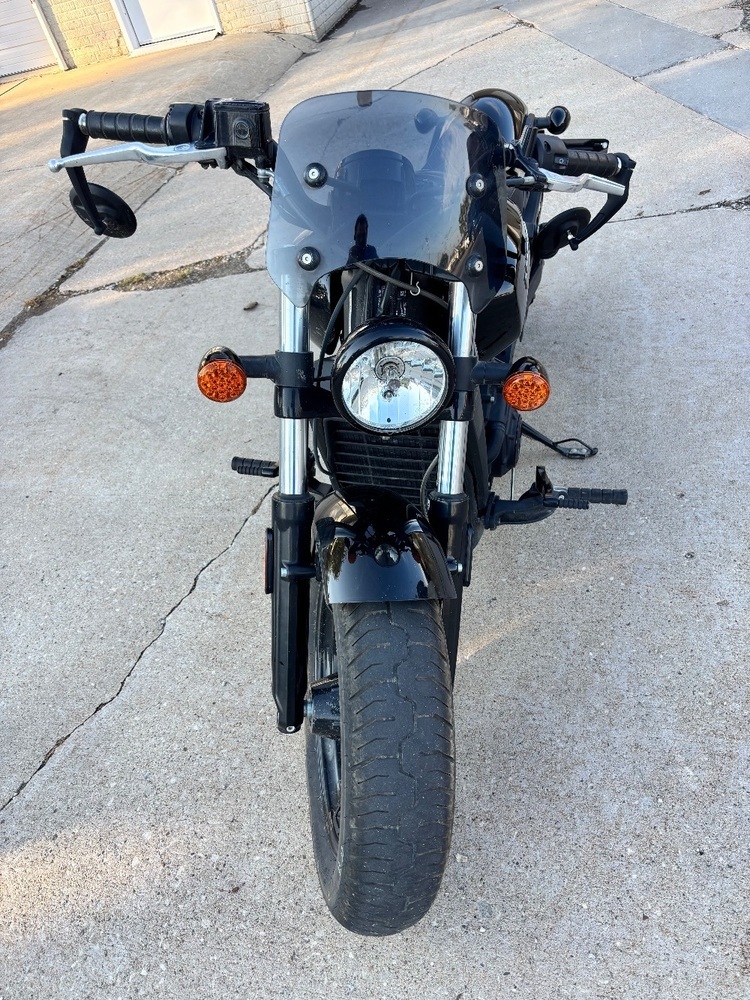 Runs like a champ! Good battery, brakes & tires! Has a small gash on the tank. Sounds tough!
