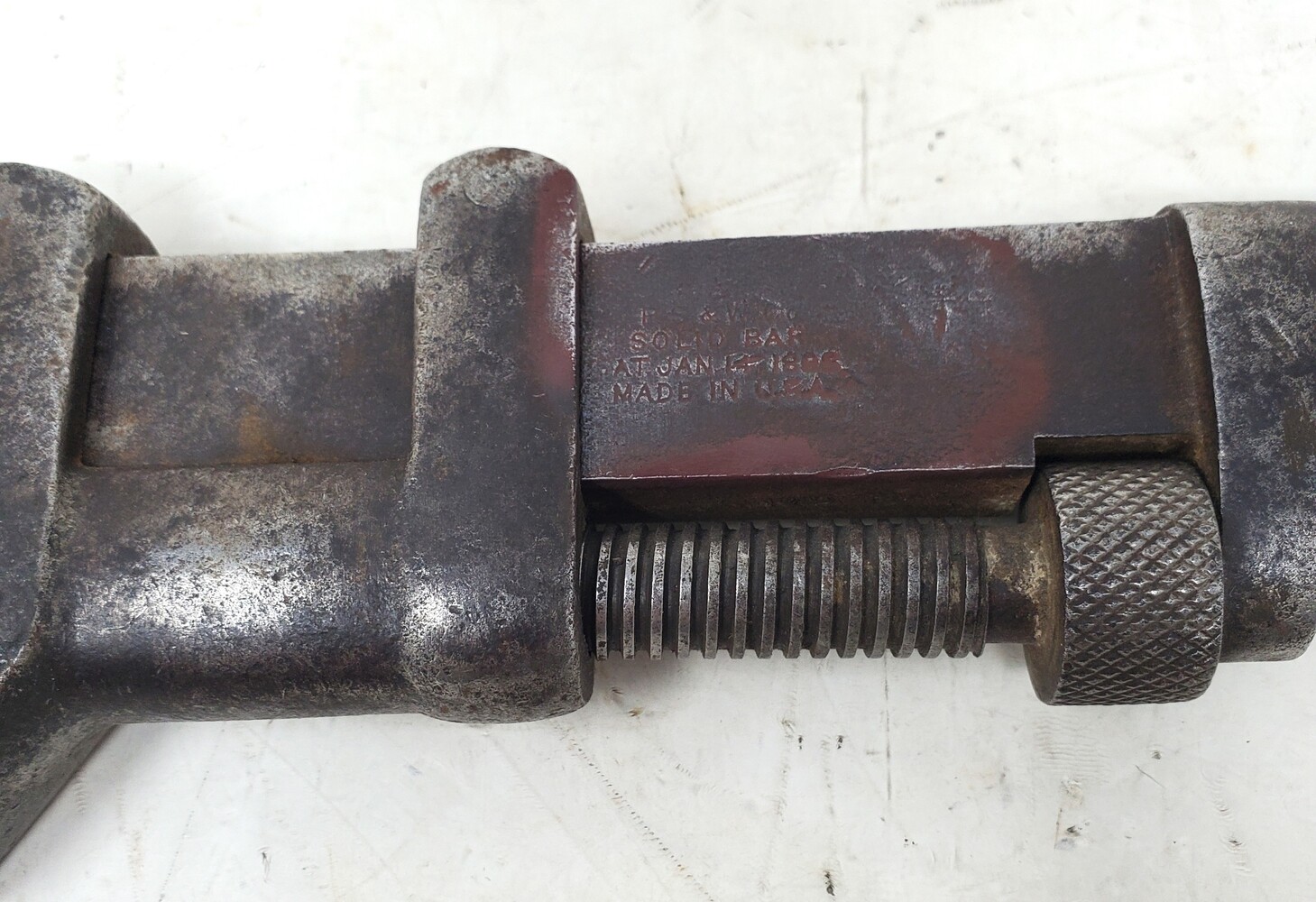 Antique 12” P. S. & W Co. Solid Bar Adjustable Monkey Wrench Pat. Jan 14, 1886 | Money and More