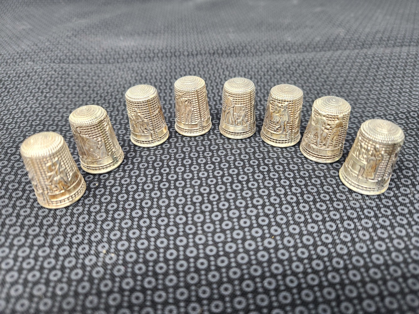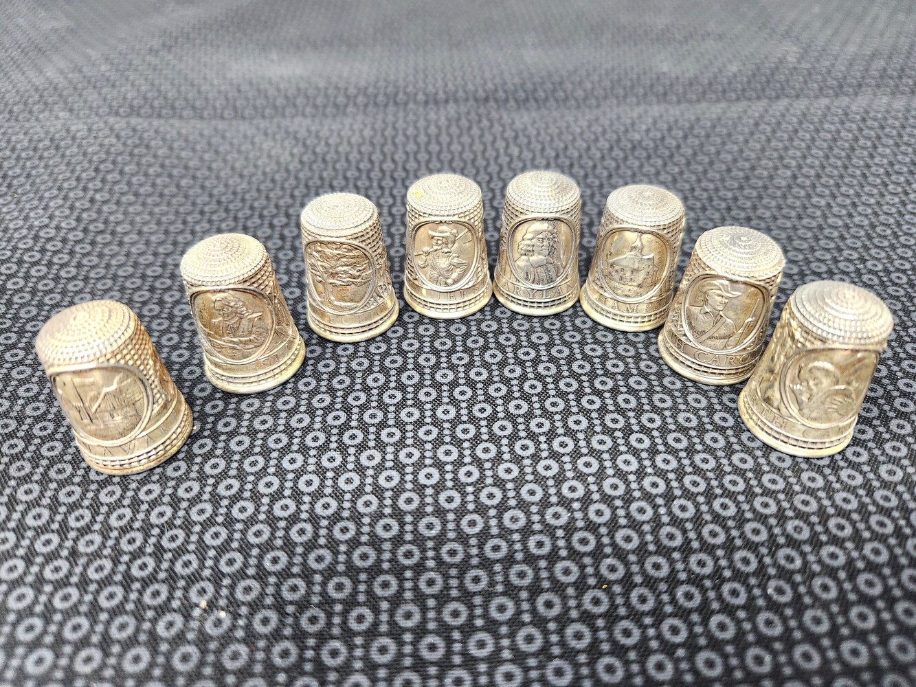Antique Simons Bros. Sterling Silver Thimble Lot of 8 – U.S. State Series (.925) | Money and More