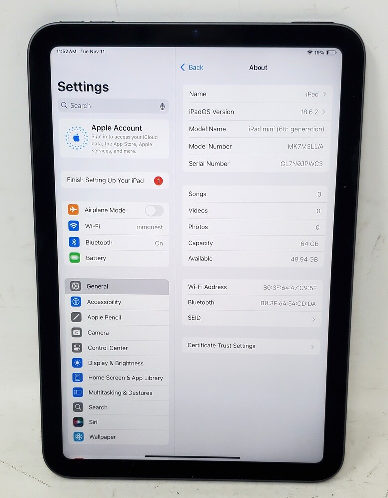 Apple iPad Mini - 8.3" - 6th Gen - 64GB - WiFi - MK7M3LL/A w/ Charger & Box