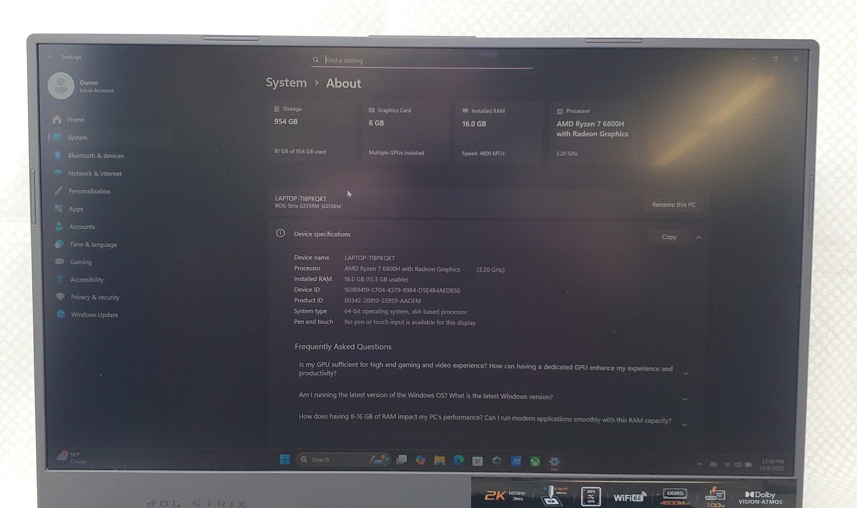 Asus ROG Strix G513R Gaming Laptop w/ AMD Ryzen 7, 16GB RAM, 1TB SSD, RTX 3060