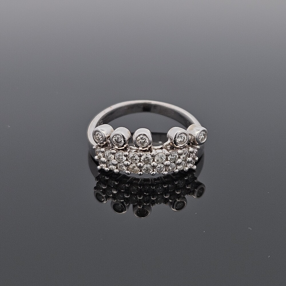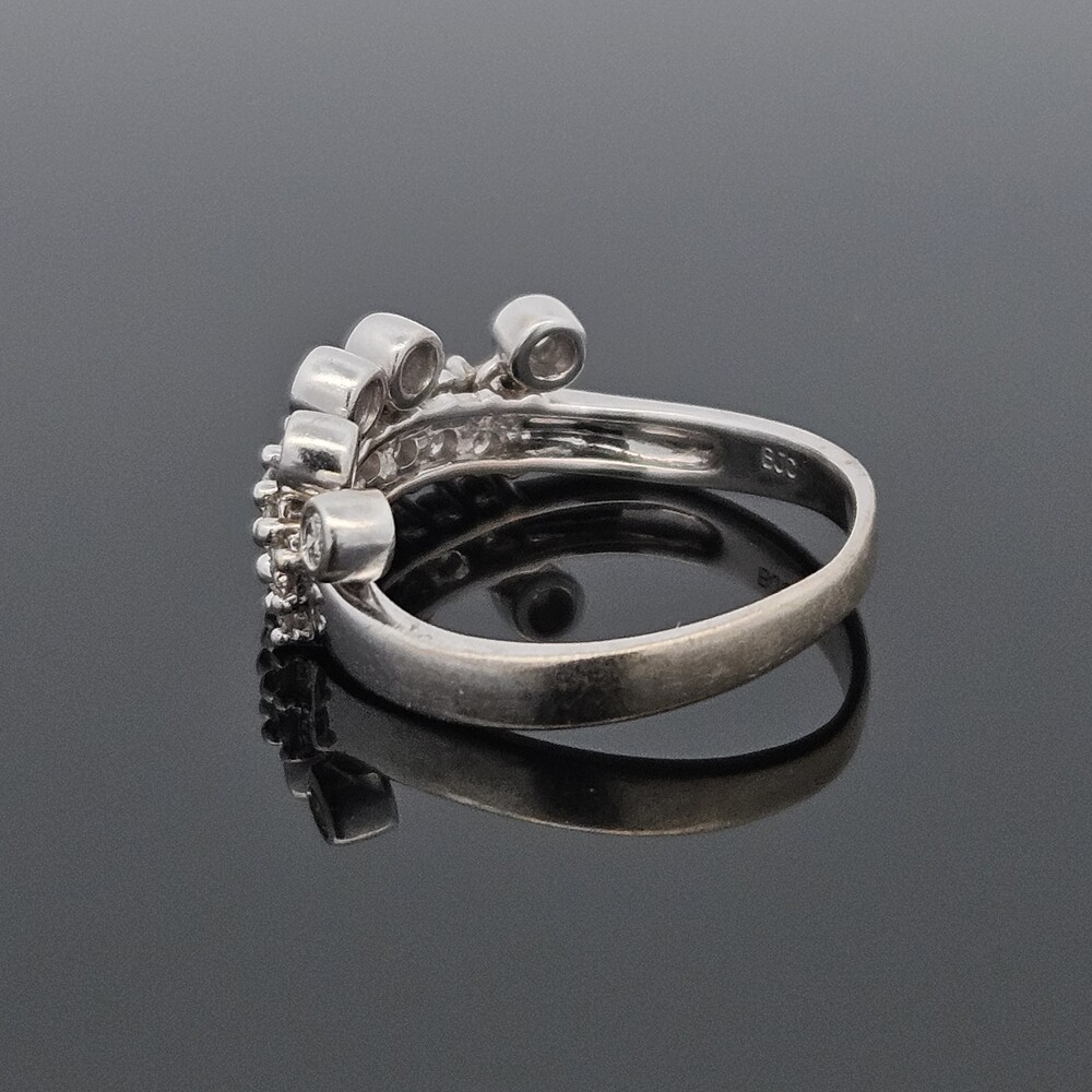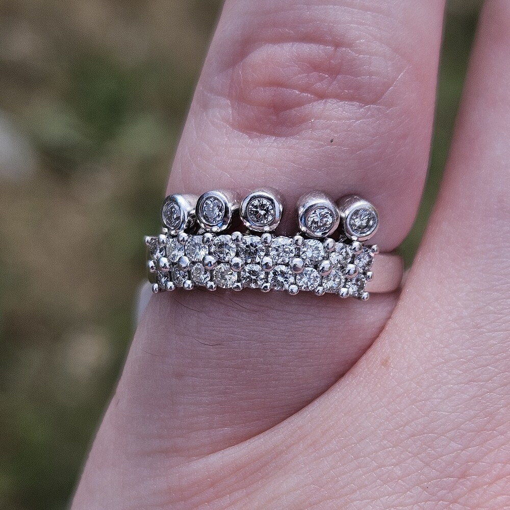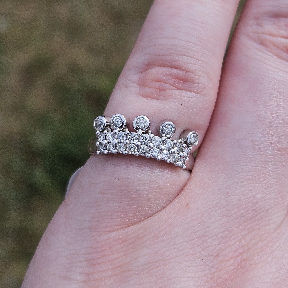BJC 14K White Gold Diamond Crown Tiara Ring Moving Articulated Jewels Size 6.5
