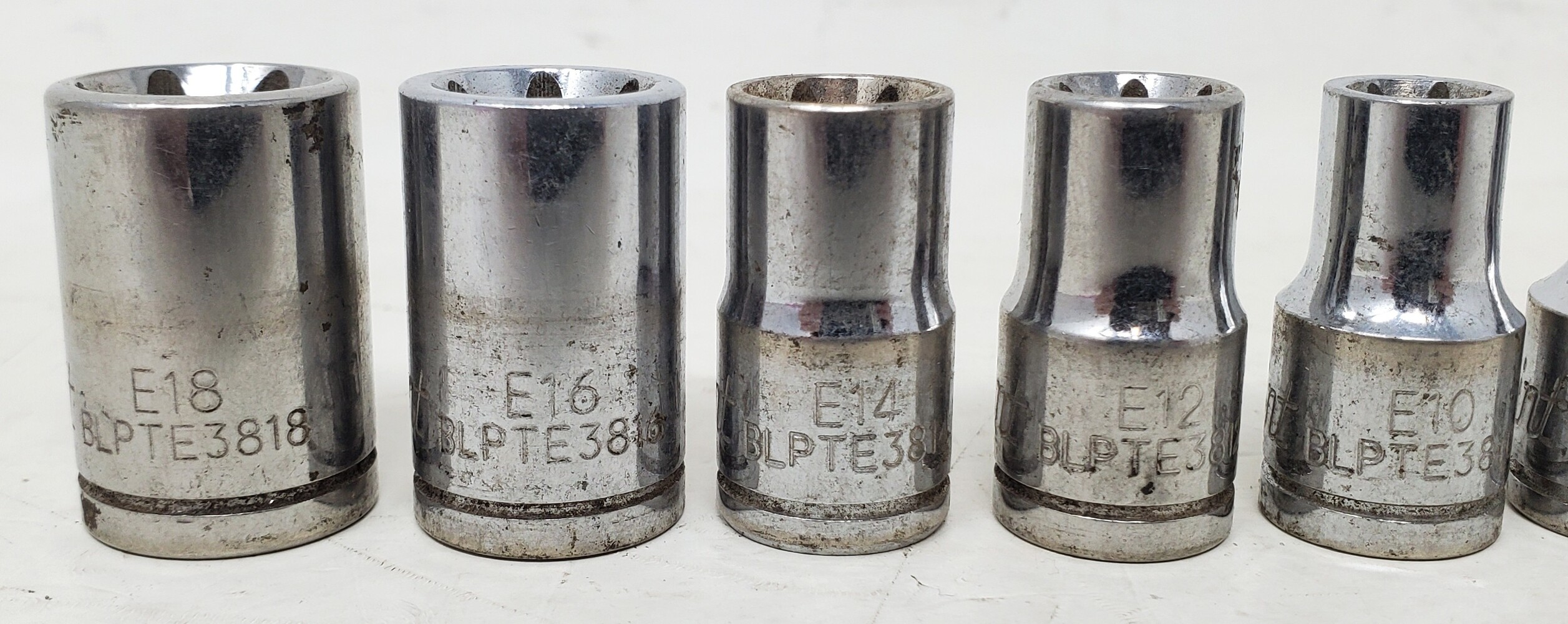 Blue Point 3/8" Inverted E Torx Socket Set - E18, E16, E14, E12, E10 & E8-E4