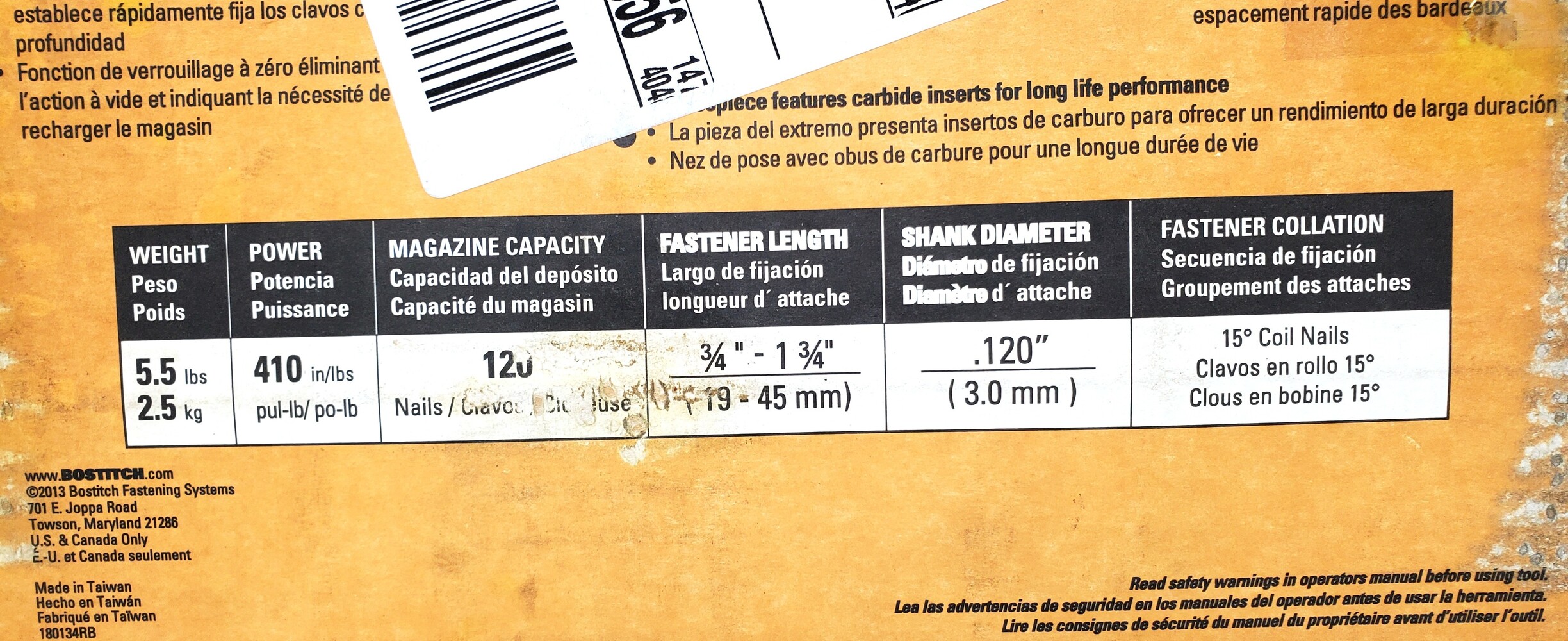 BOSTITCH RN46-1 Coil Roofing Nailer 3/4" to 1-3/4" - NEW IN OPEN BOX | Money and More