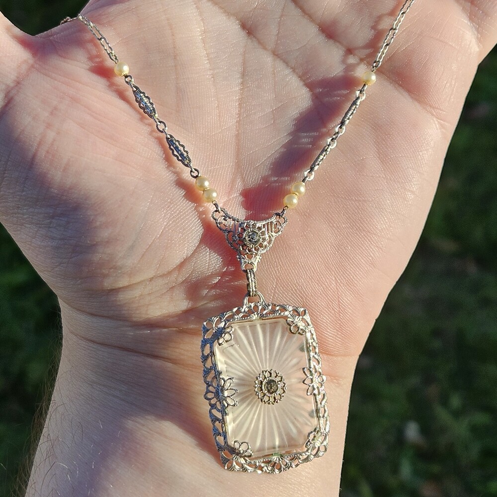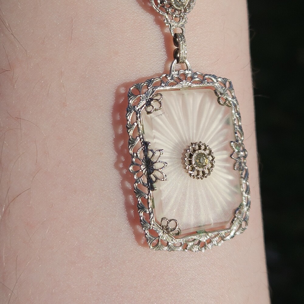 Cemphor Costume Jewelry Silver Tone Crystal Pendant with Necklace 15 Inches | Money and More