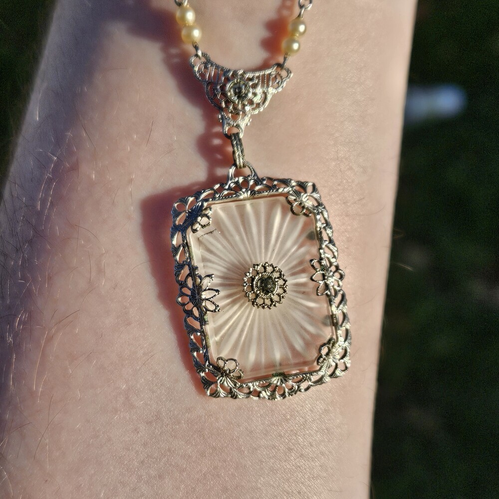 Cemphor Costume Jewelry Silver Tone Crystal Pendant with Necklace 15 Inches
