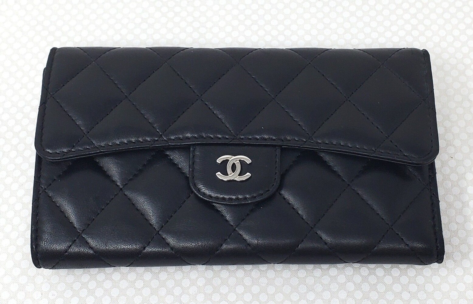 Chanel Lambskin Quilted Flap Wallet w/ Dust Bag & Legit ID
