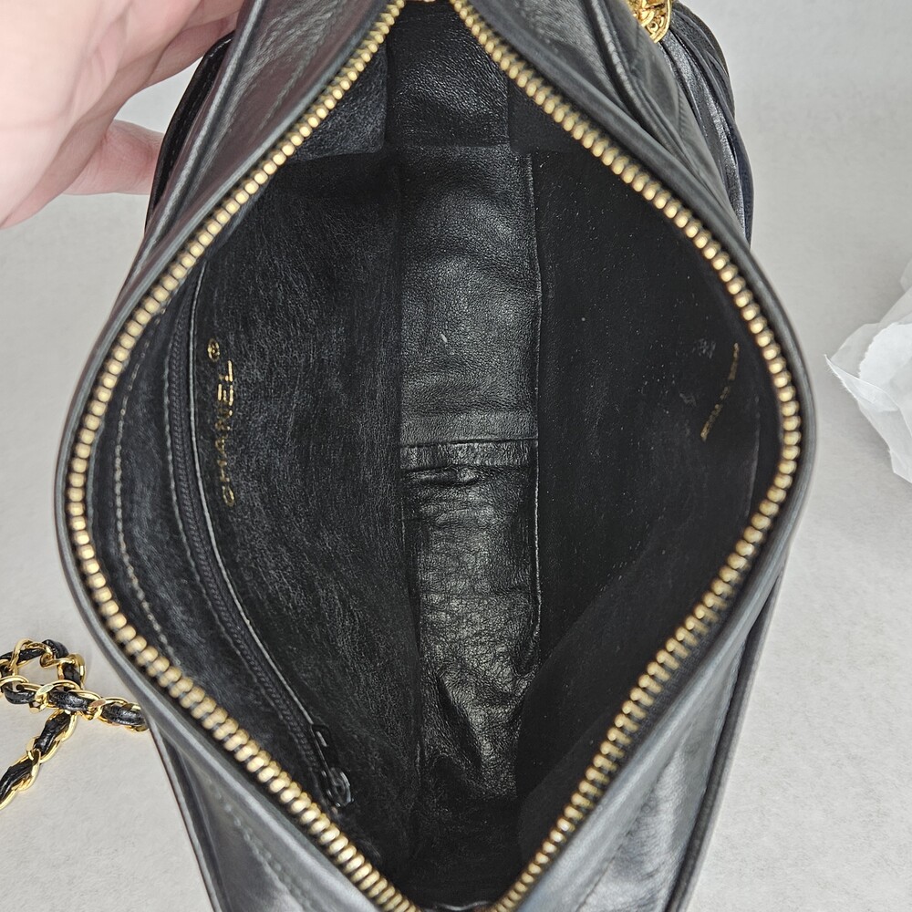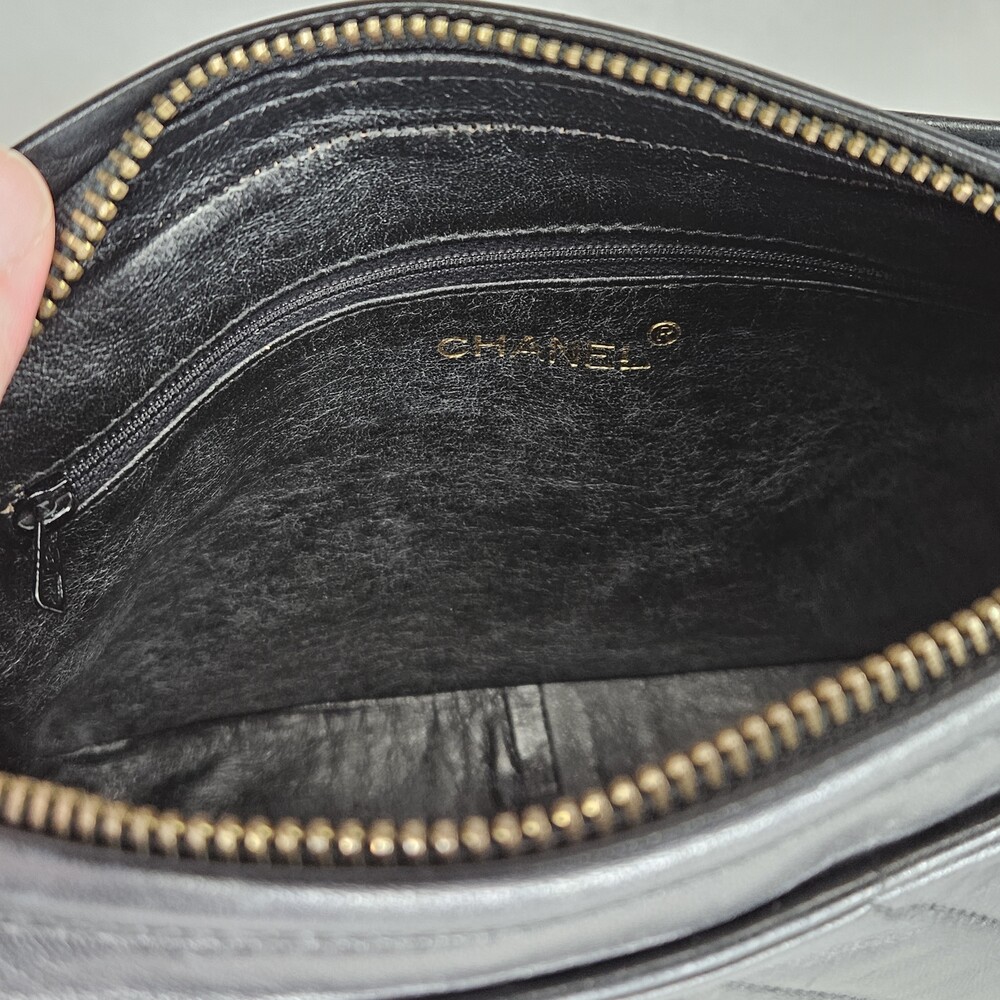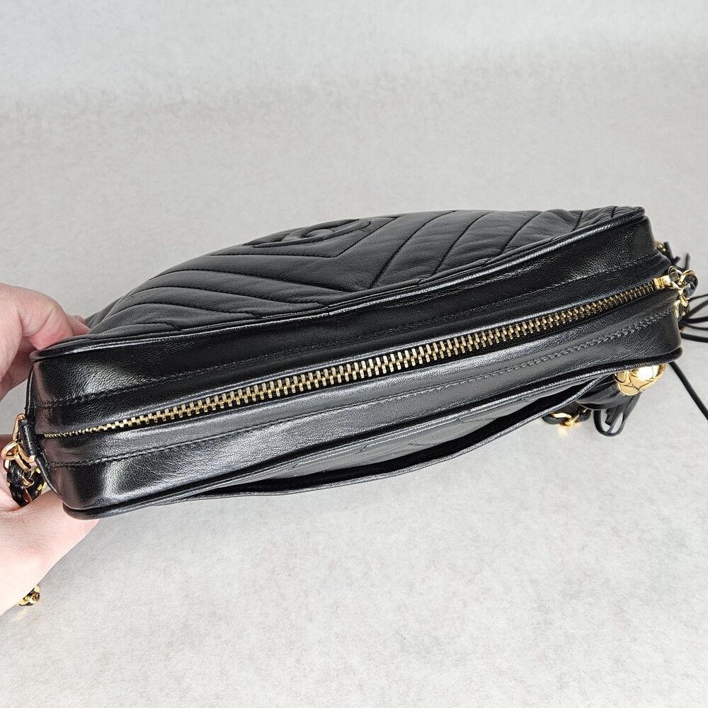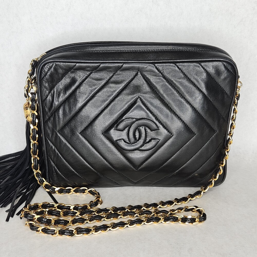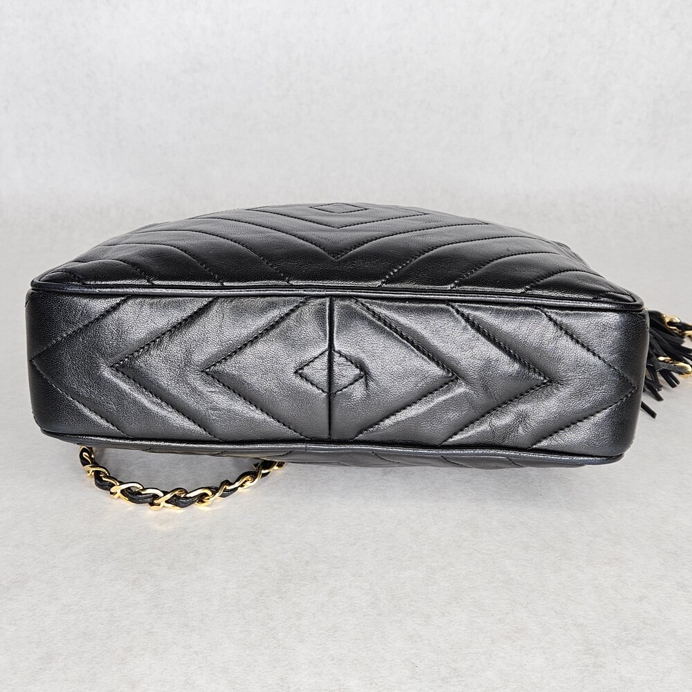 Chanel Quilted Black Leather Crossbody Fringe Shoulder Bag with Strap Tassel COA