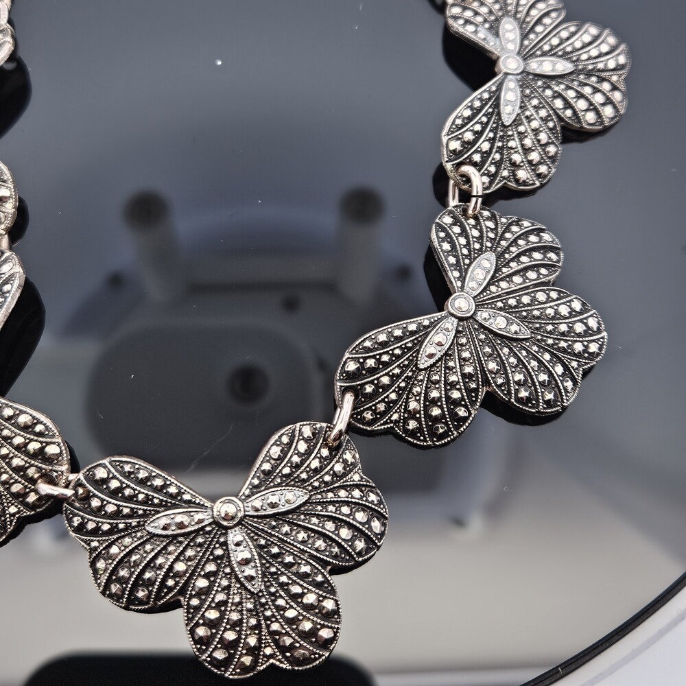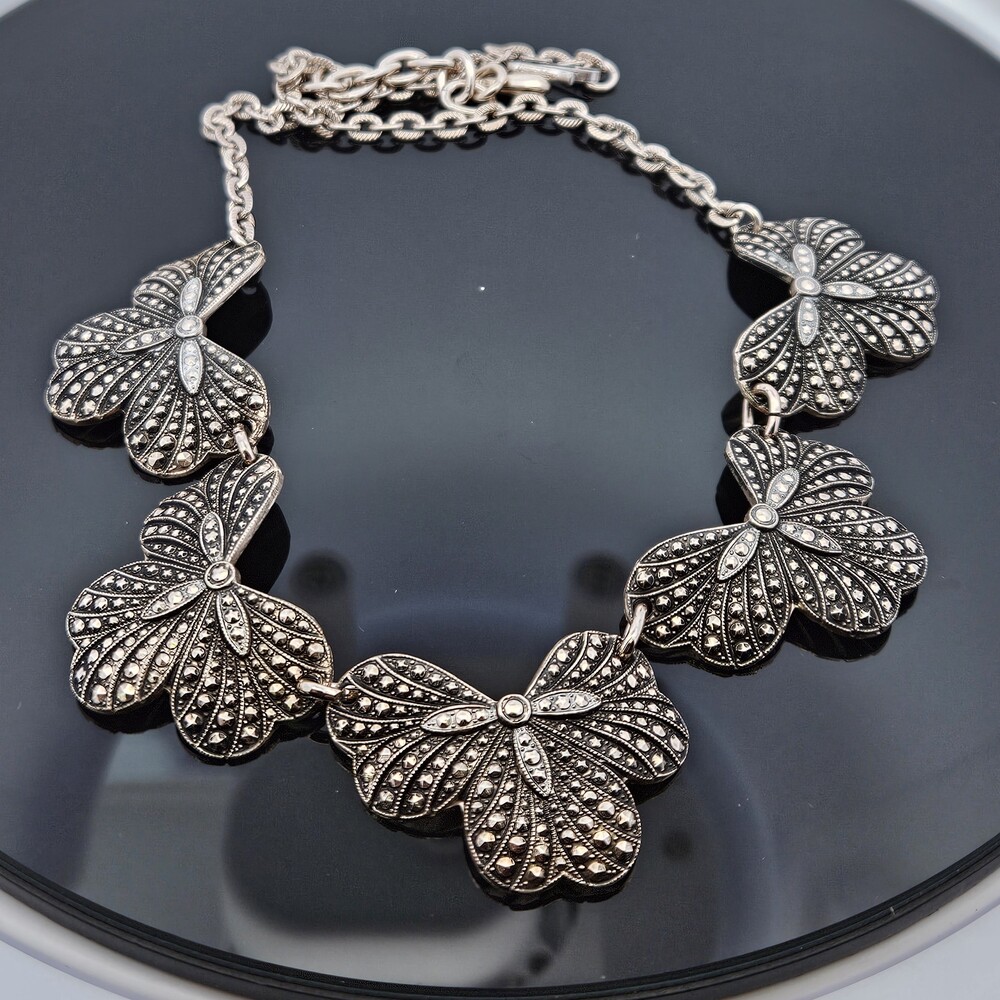 Costume Jewelry Butterfly Flower Chain Link Necklace 17 inches