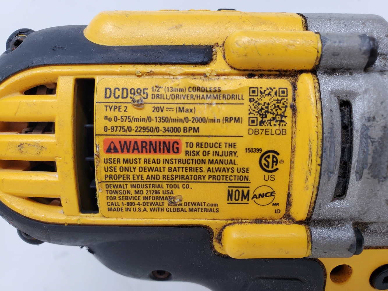 DeWALT DCD985 20V MAX 1/2" Cordless Drill/Driver/Hammerdrill - TOOL ONLY