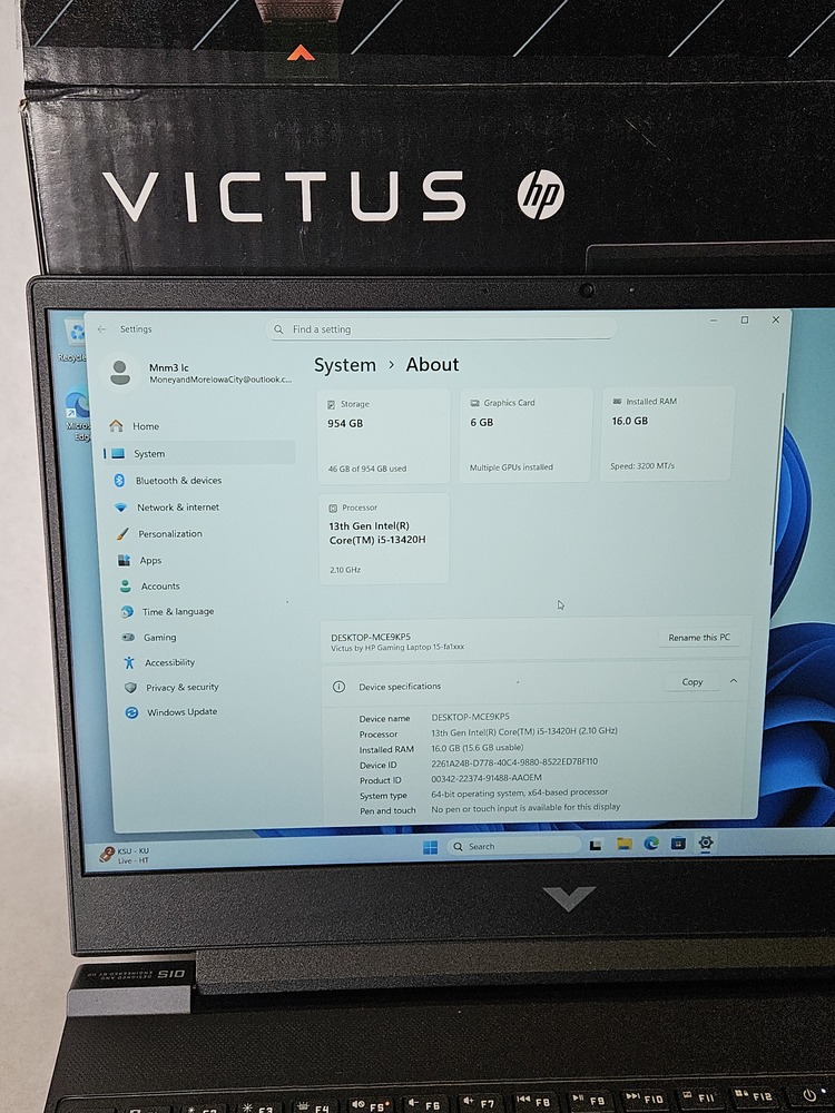 - Model: Victus Gaming Laptop 15-fa1082wm