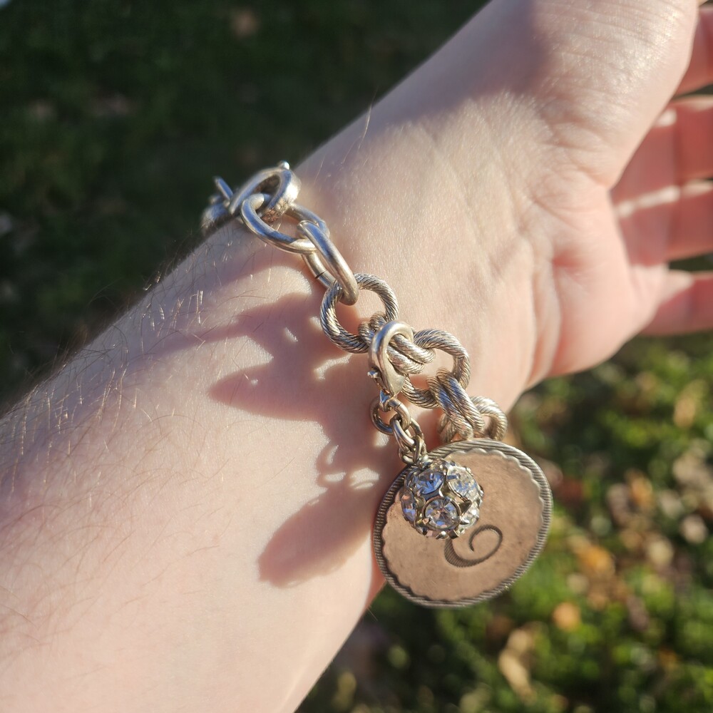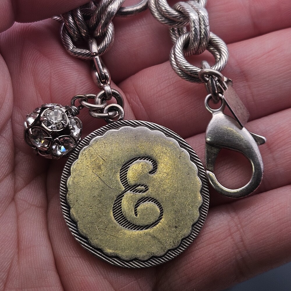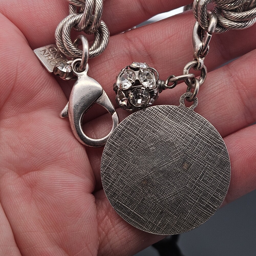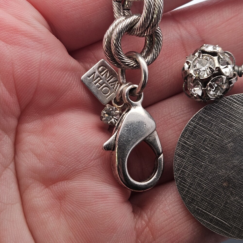 John Wind E Large Token Rope Chain Link Bracelet with Crystal Ball Bead 7 Inches