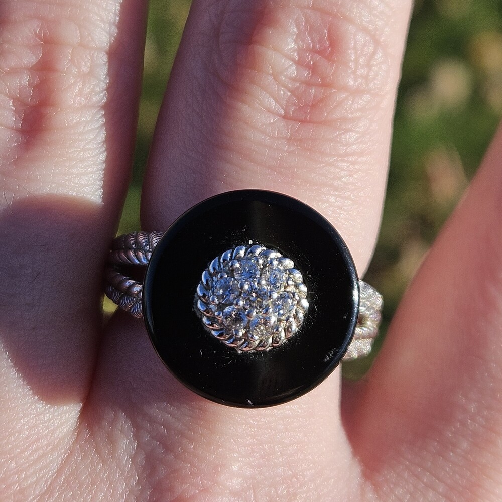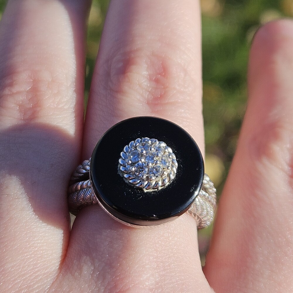 Judith Ripka 925 Sterling Silver CZ Black Onyx Statement Ring Size 8