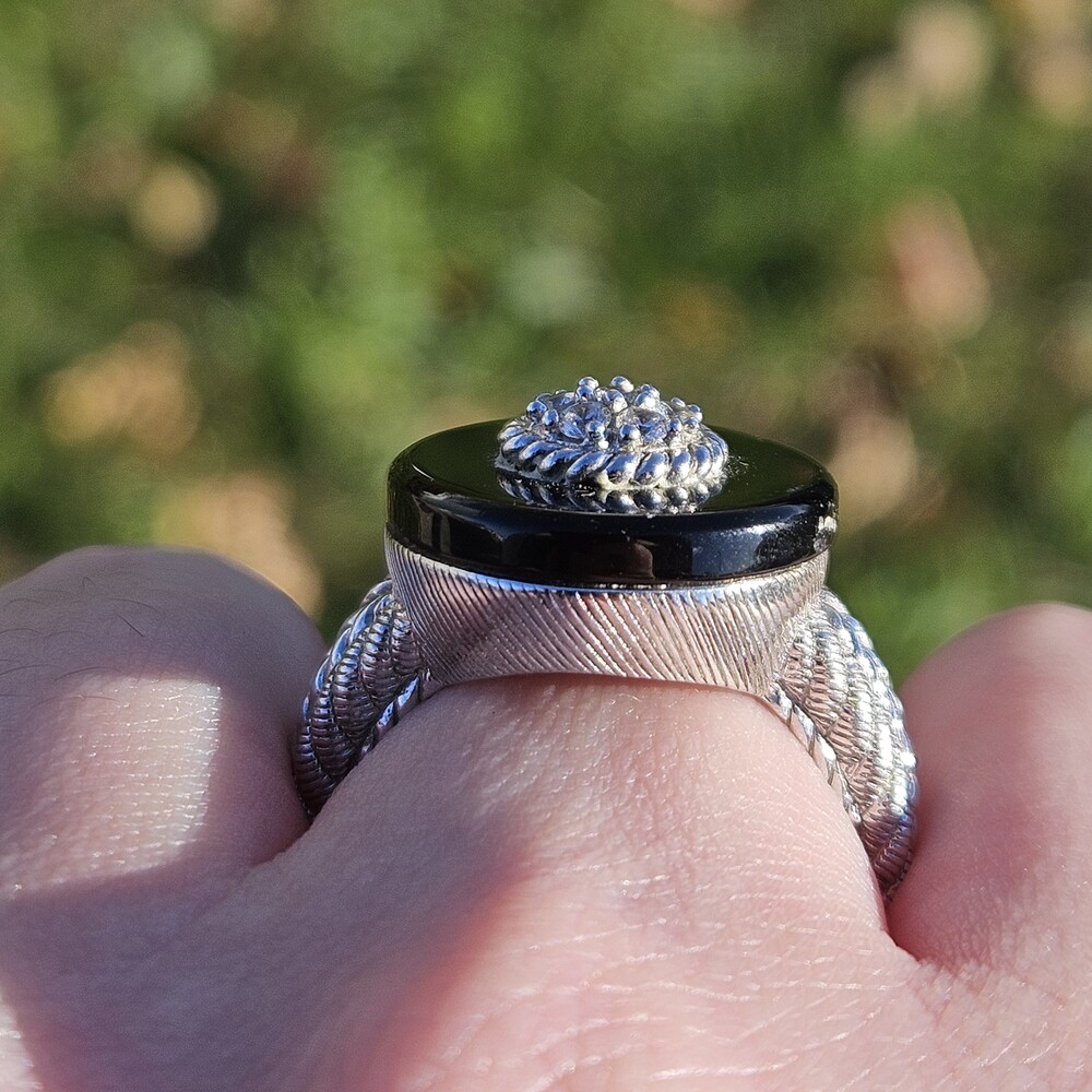 - Minor surface wear on the silver and black onyx