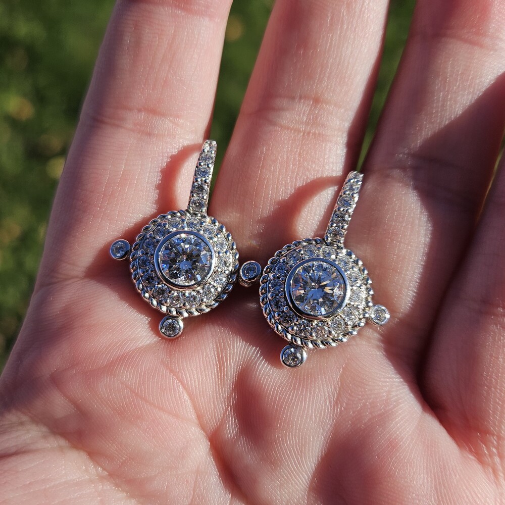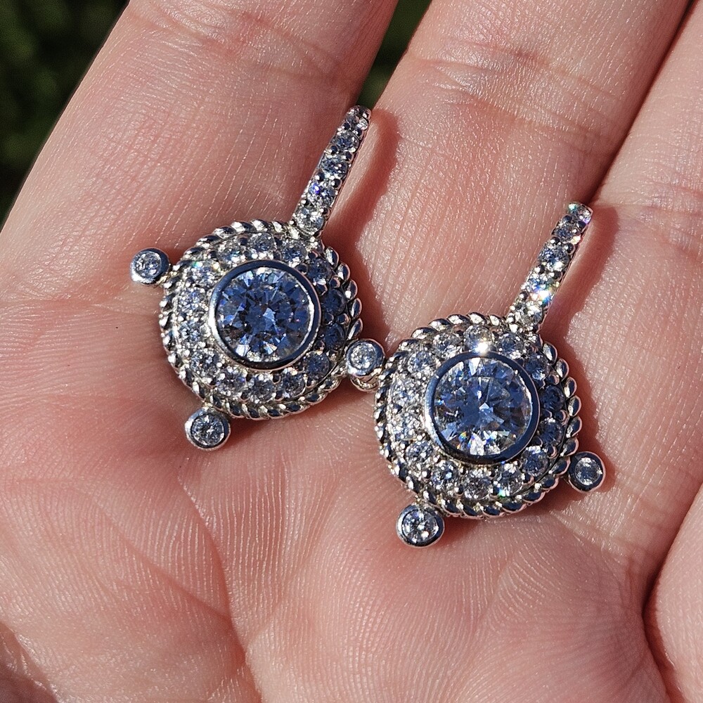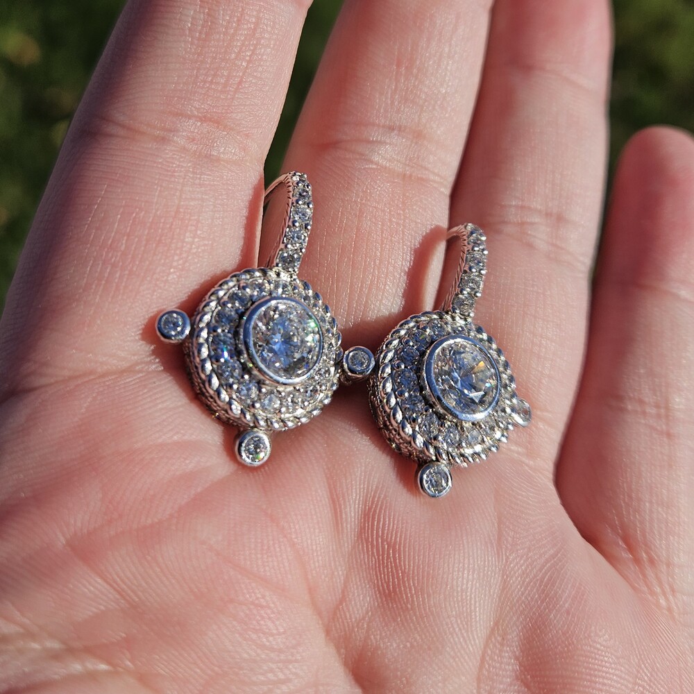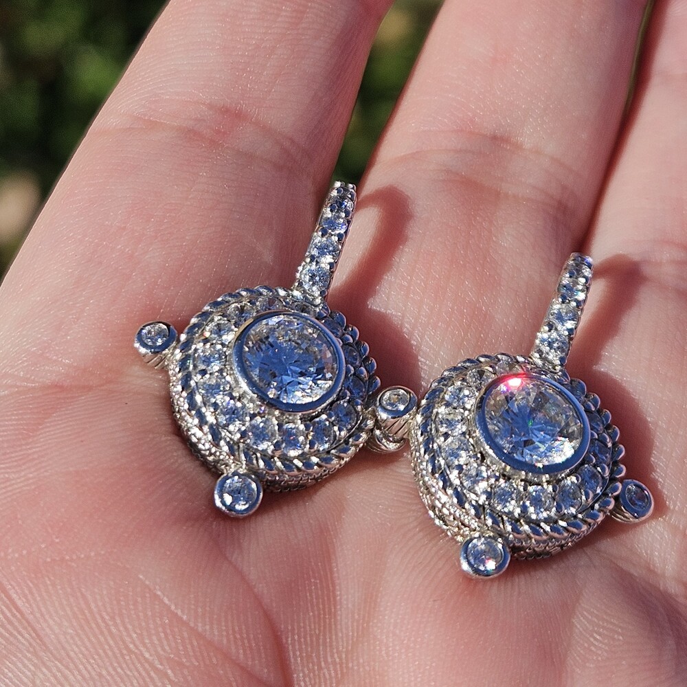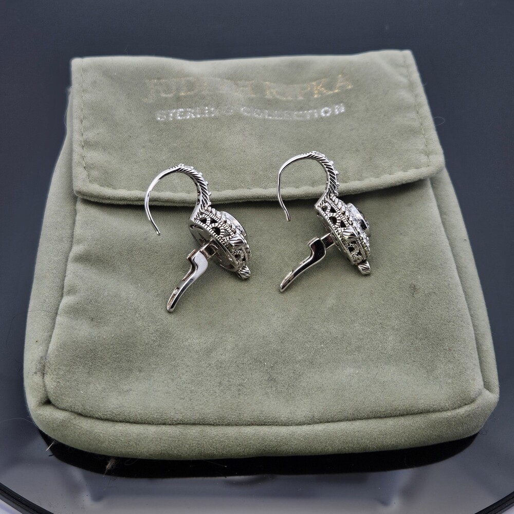Judith Ripka 925 Sterling Silver CZ Cluster Drop Earrings 20x25mm