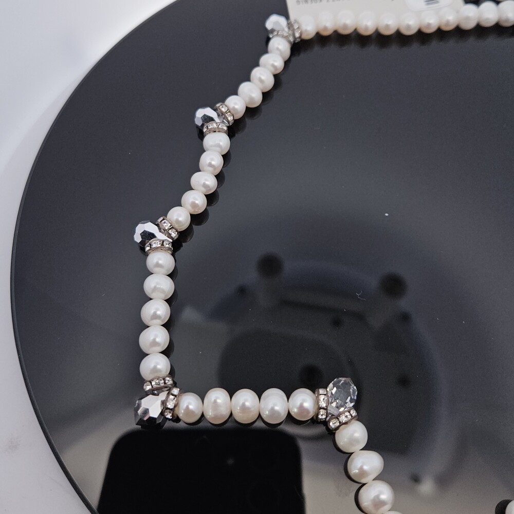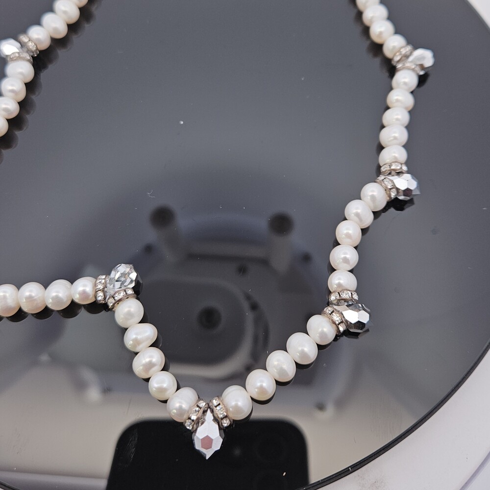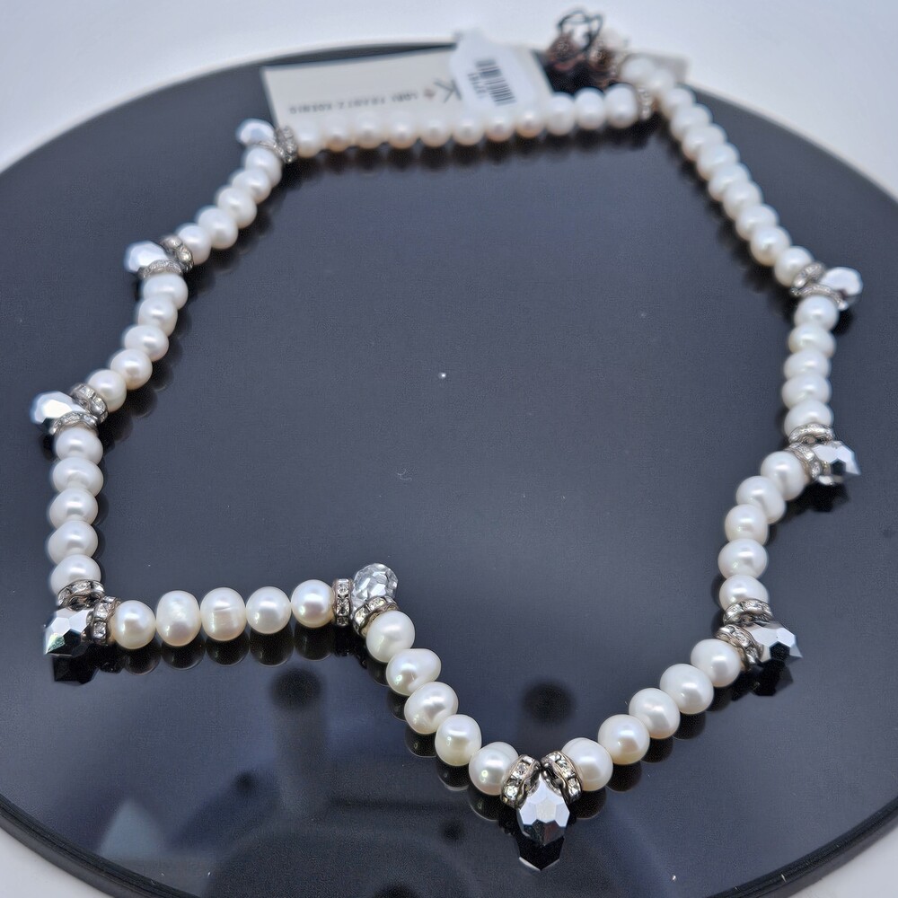 Lori Fantz-Koenig Faux Pearl Crystal Art Deco Necklace Chain 17-18.5 inches