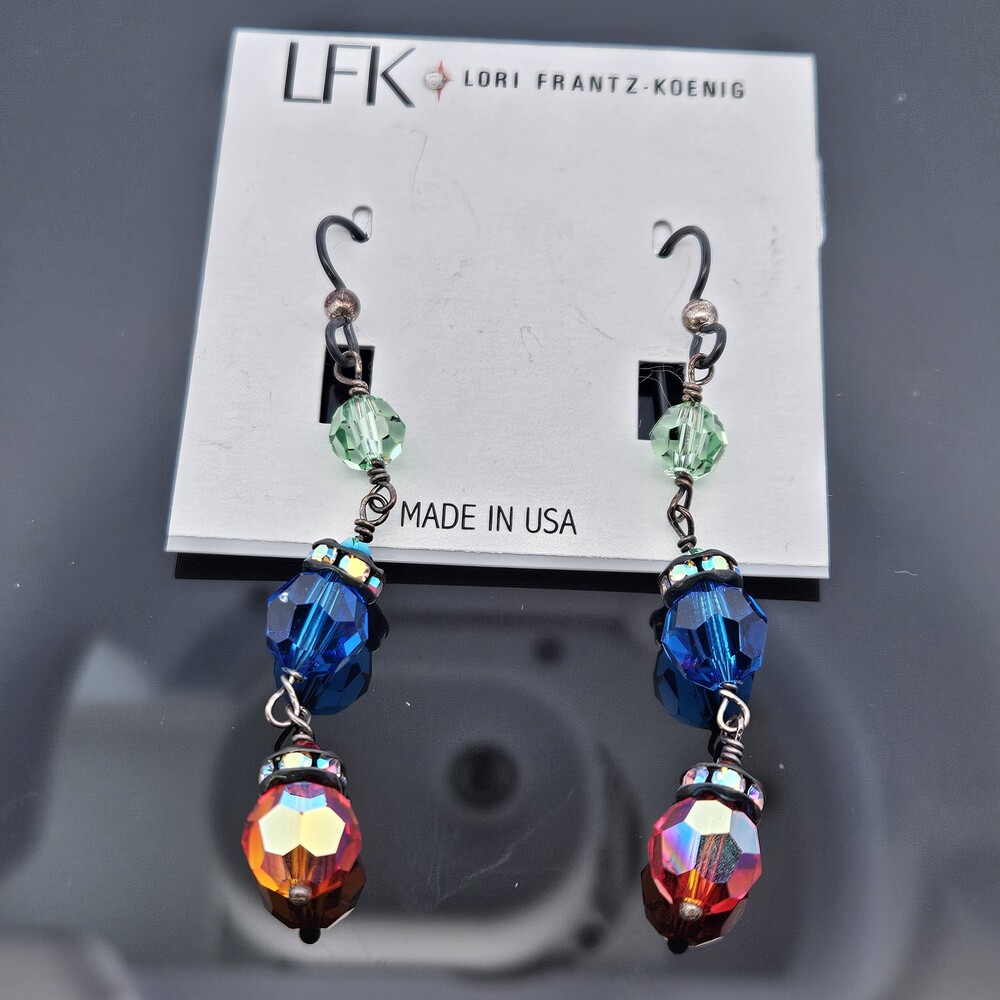 Lori Frantz-Koenig Blue Red Green Crystal Drop Dangle Earrings