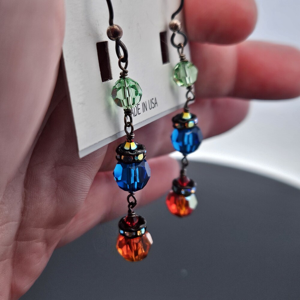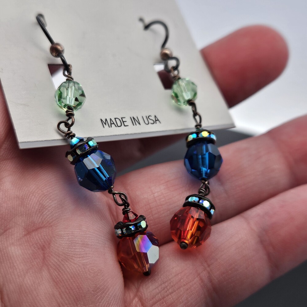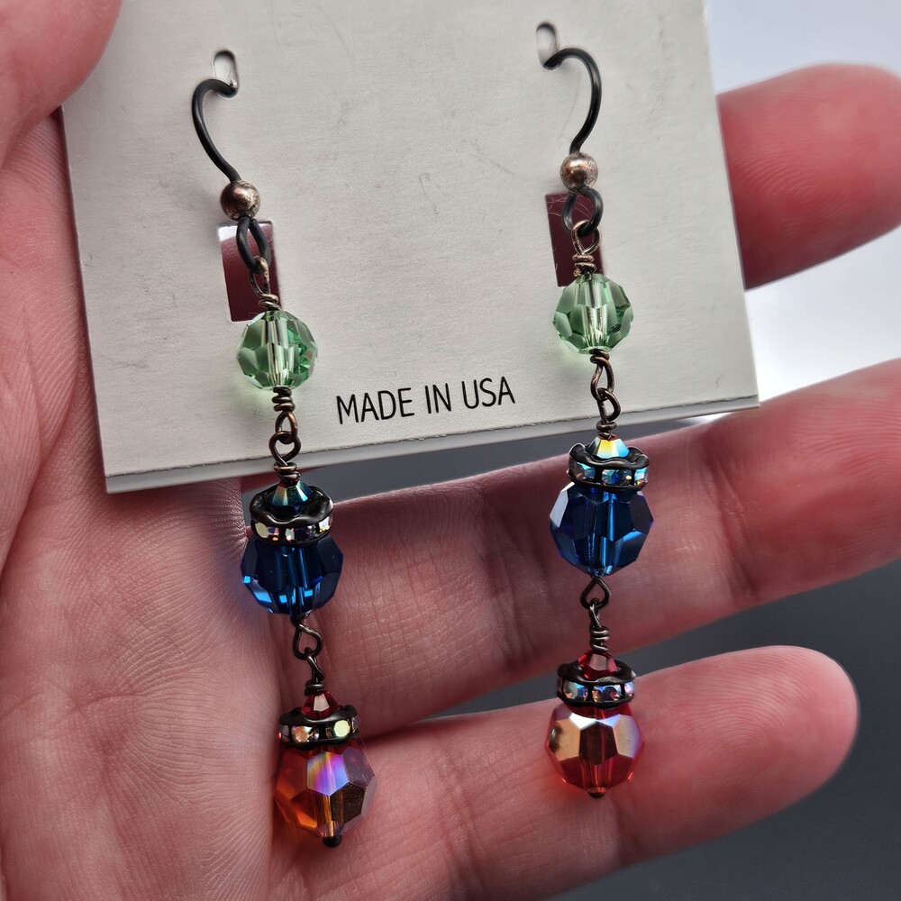 Lori Frantz-Koenig Blue Red Green Crystal Drop Dangle Earrings | Money and More