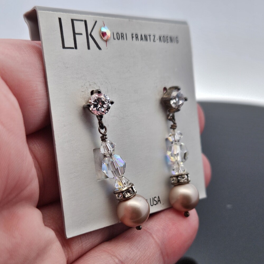Lori Frantz-Koenig Crystal Pearl Drop Dangle Earrings
