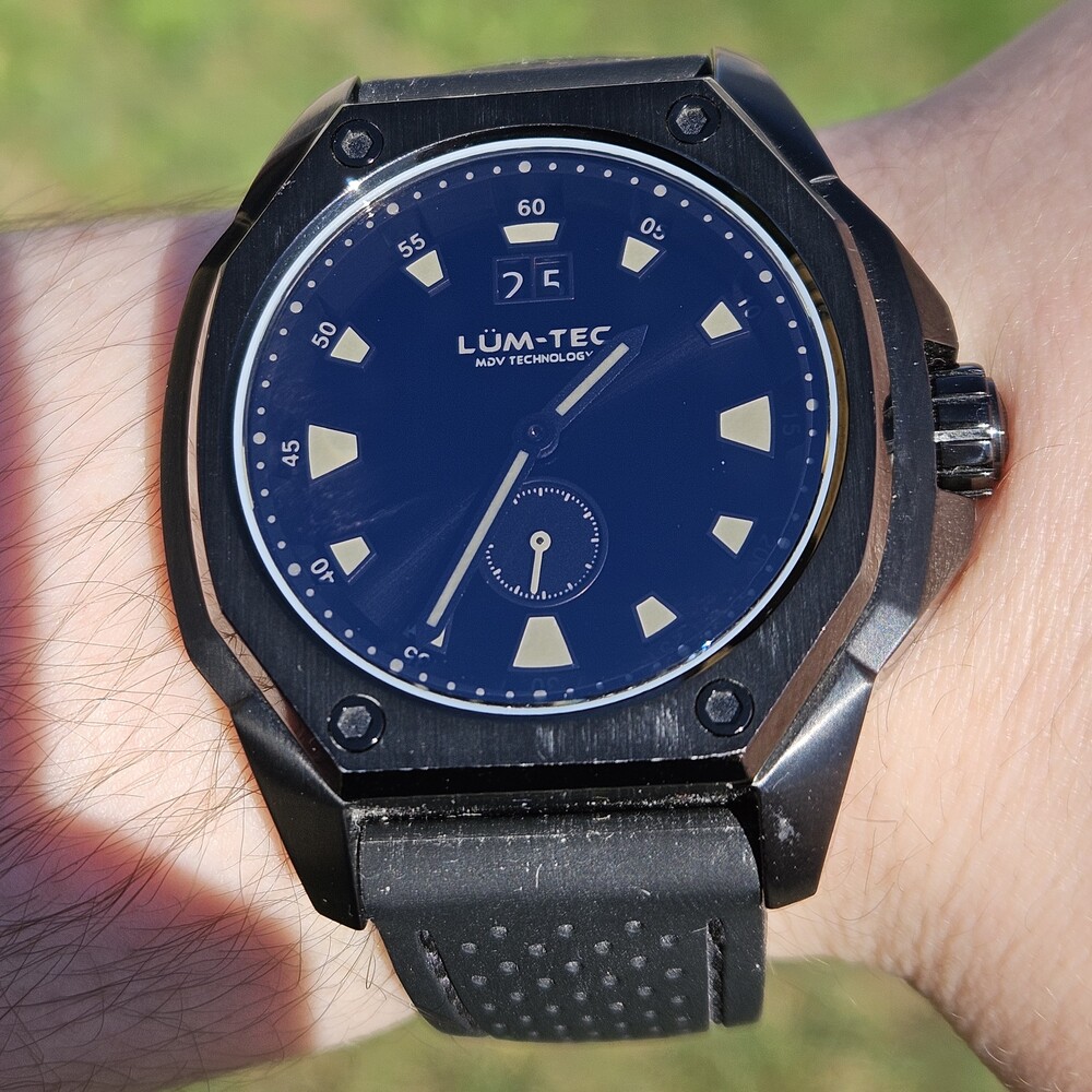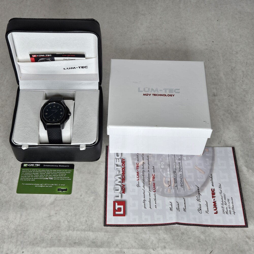 - Includes: Lum-Tec watch, Original silicone band, original paperwork, original watch box/outer cardboard box