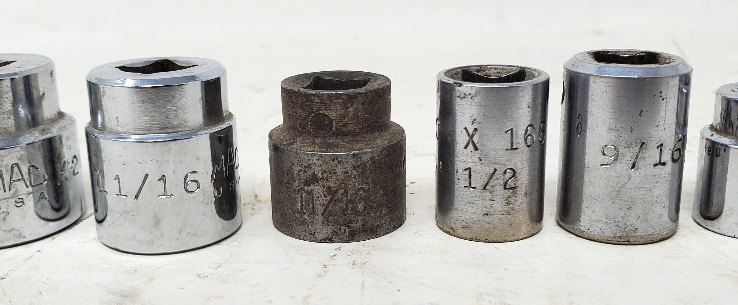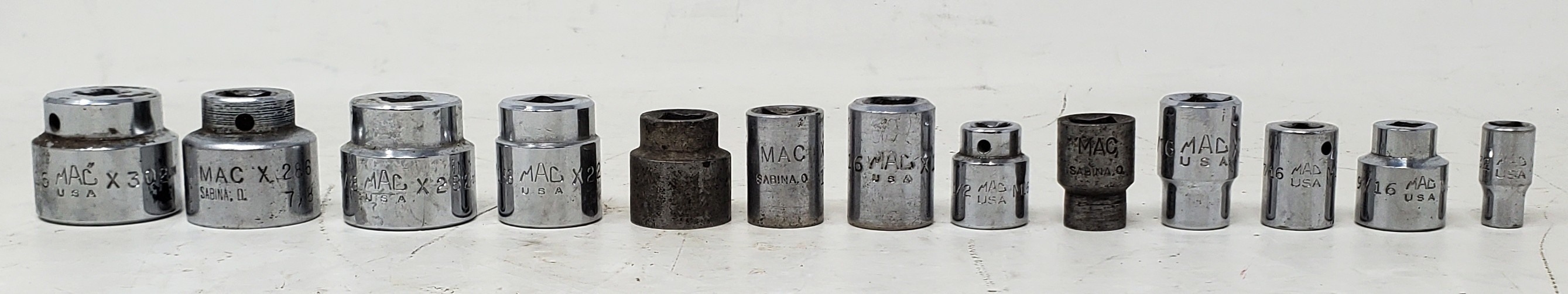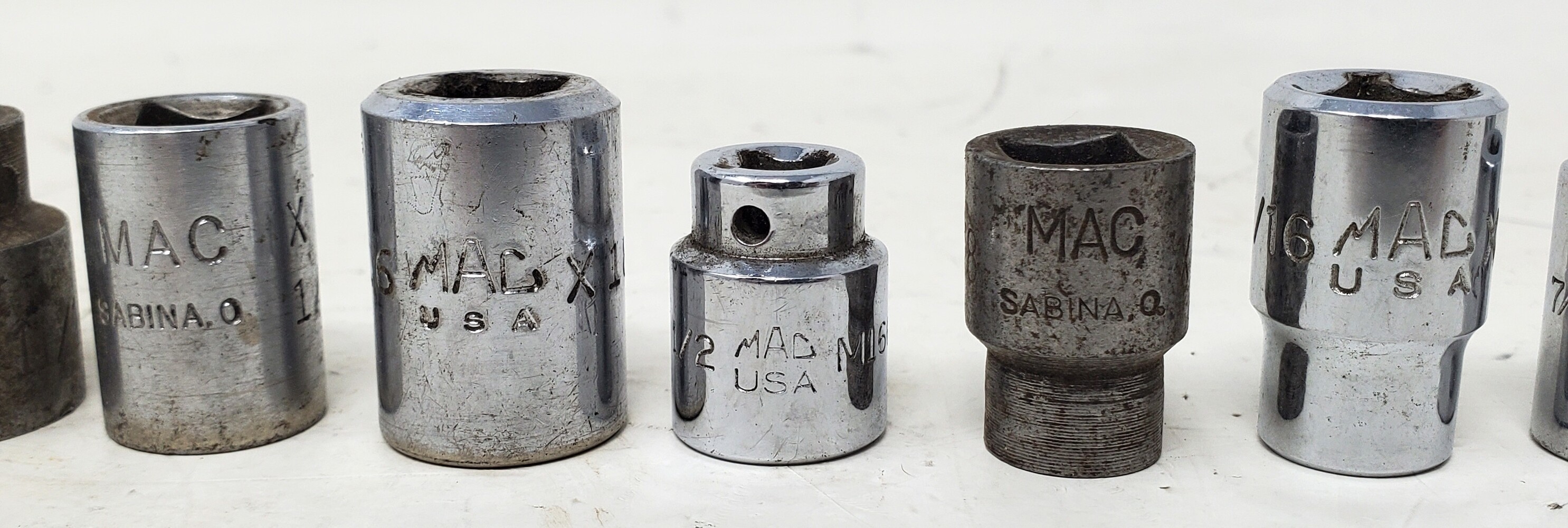 MAC TOOLS Lot Of 13 Sockets - Mix Of 6 PT & 12 PT w/ One Extension
