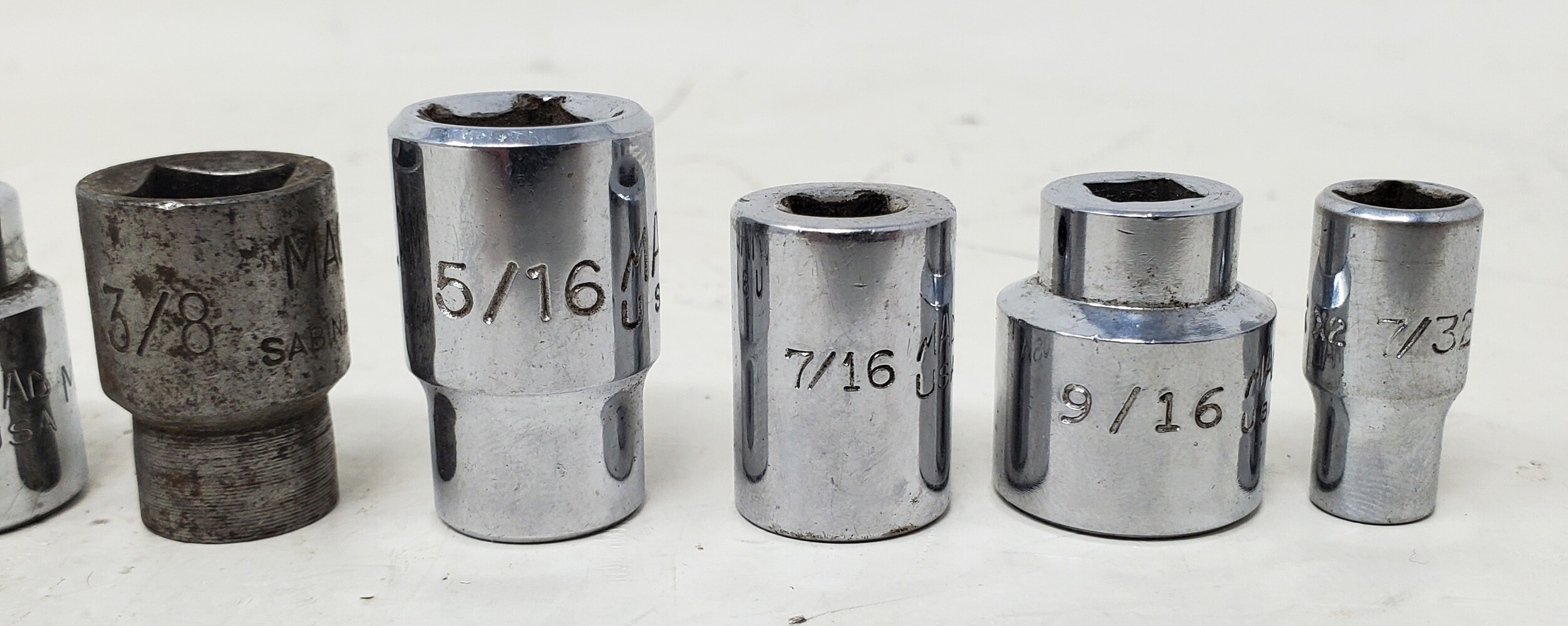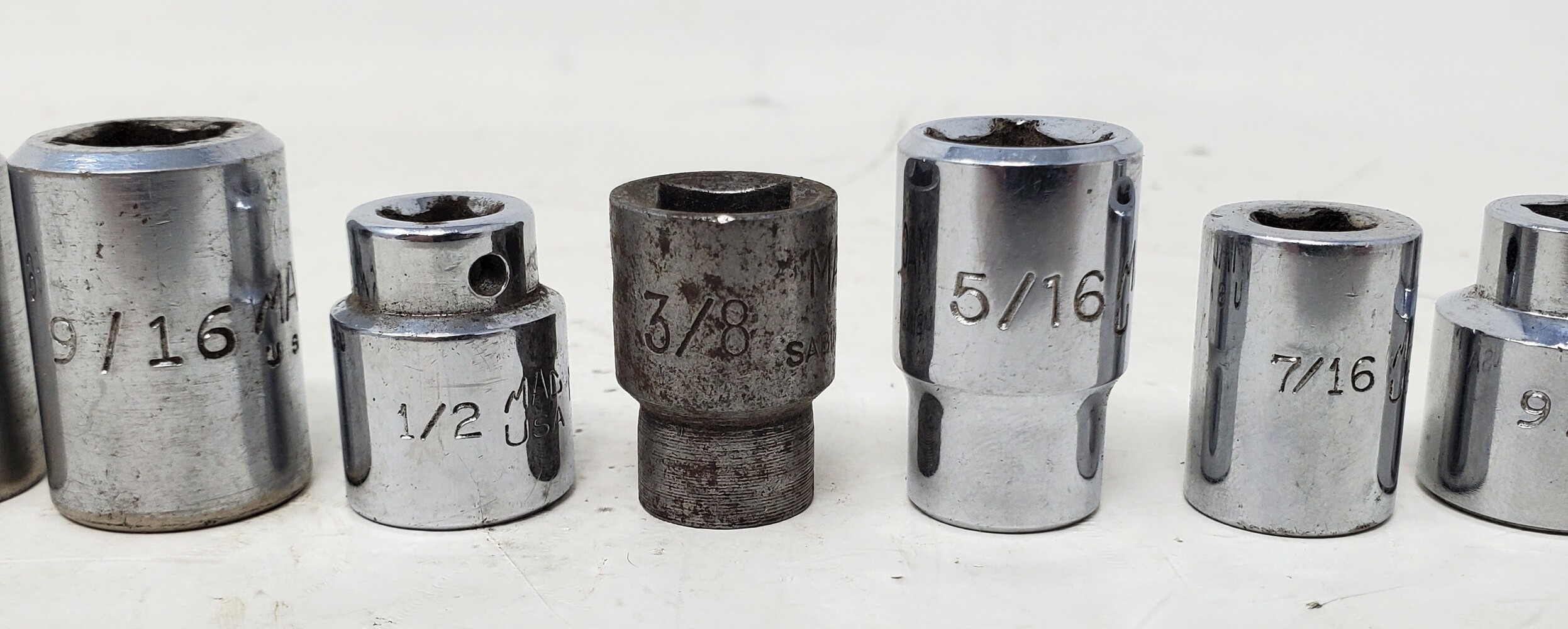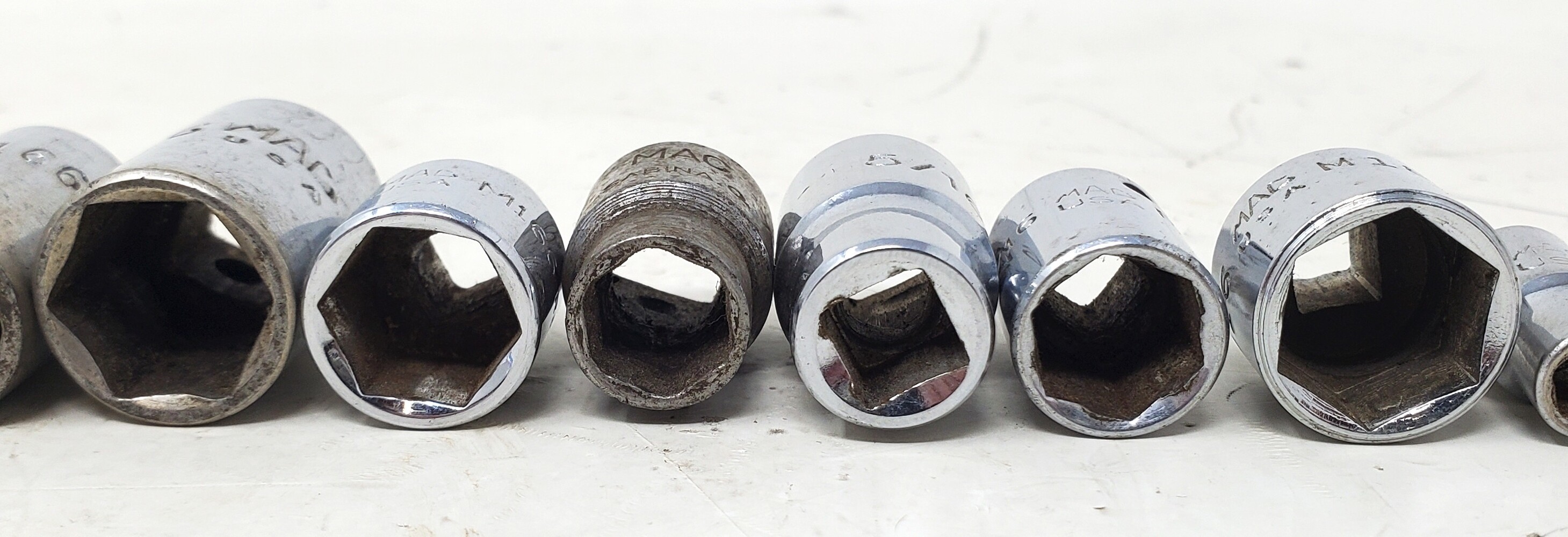 MAC TOOLS Lot Of 13 Sockets - Mix Of 6 PT & 12 PT w/ One Extension