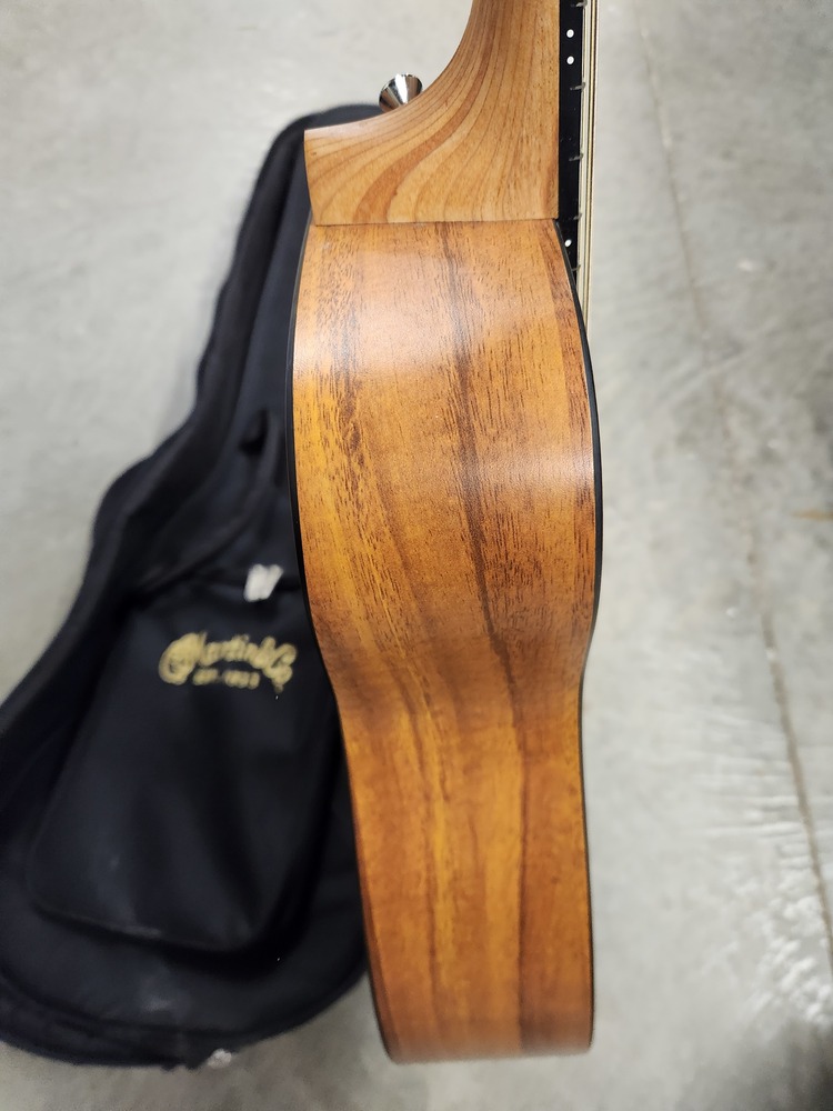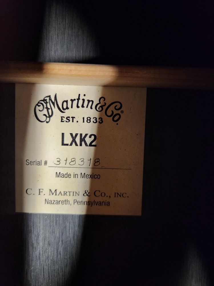 The LXK2 Little Martin may be small, but its figured koa high-pressure laminate (HPL) top, back, and sides make a big impression. With its rich, natural wood grain, this guitar delivers the warm, organic look of koa—without the upkeep of solid wood. Its modified 0 body is designed for effortless comfort, making it the perfect companion for travel, student practice, or casual strumming at home or by the campfire. Built to handle any journey, the durable HPL construction resists temperature and humidity changes, so you can take it anywhere with confidence. The Modified Low Oval neck with a 23" scale length and Richlite® fingerboard ensures smooth, comfortable playability, while spruce X-bracing enhances projection and tonal clarity, and a printed herringbone rosette adds a refined touch to its striking design. Complete with a protective gig bag, the LXK2 is ready to go wherever the music takes you.