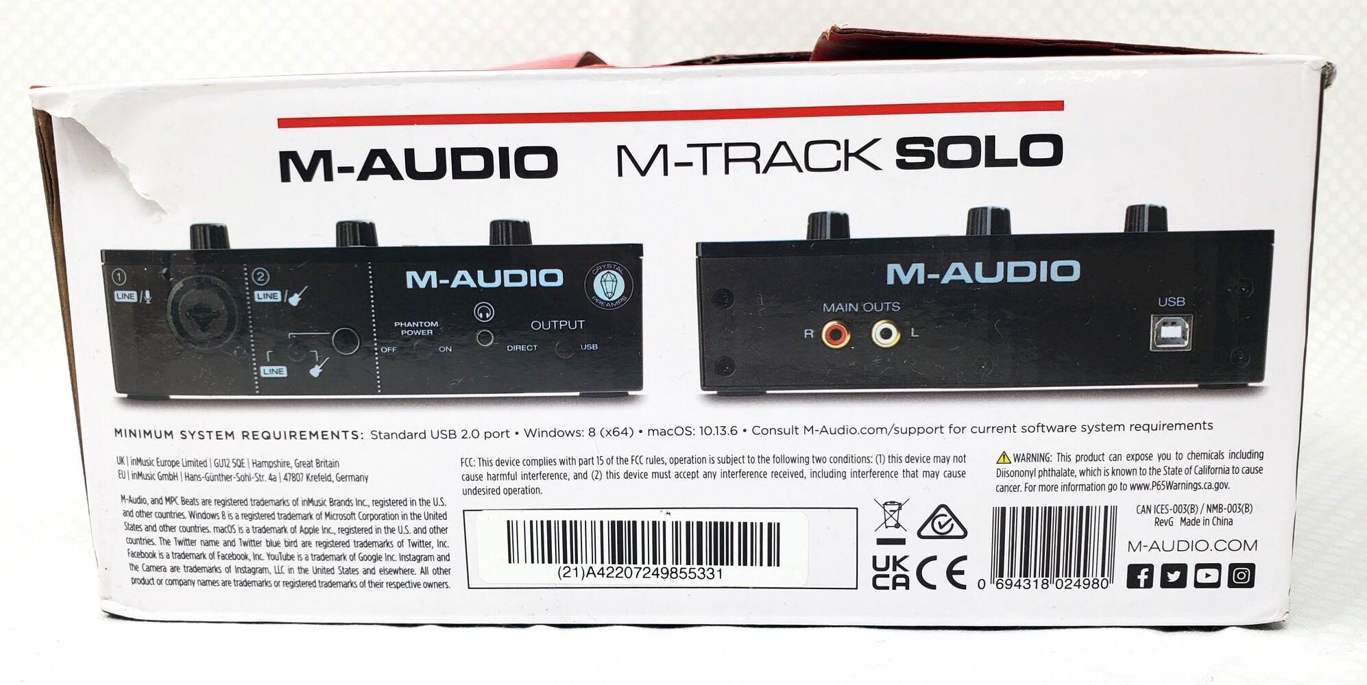 M-Audio M-Track Solo USB Audio Interface In Box w/ Manual, XLR & USB 2.0 Cables