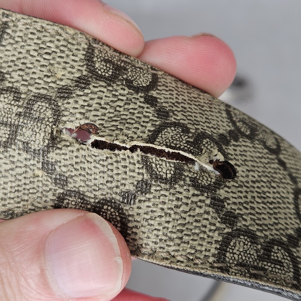 - Inside of the belt has a lot of normal wear, light discoloration/peeling