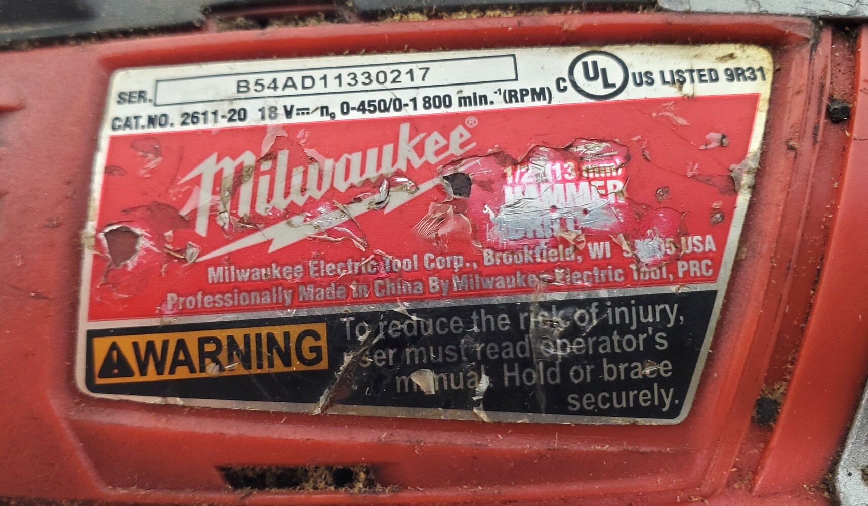 Milwaukee 2611-20 M18 18V 1/2" Hammer Drill - TOOL ONLY - Tested