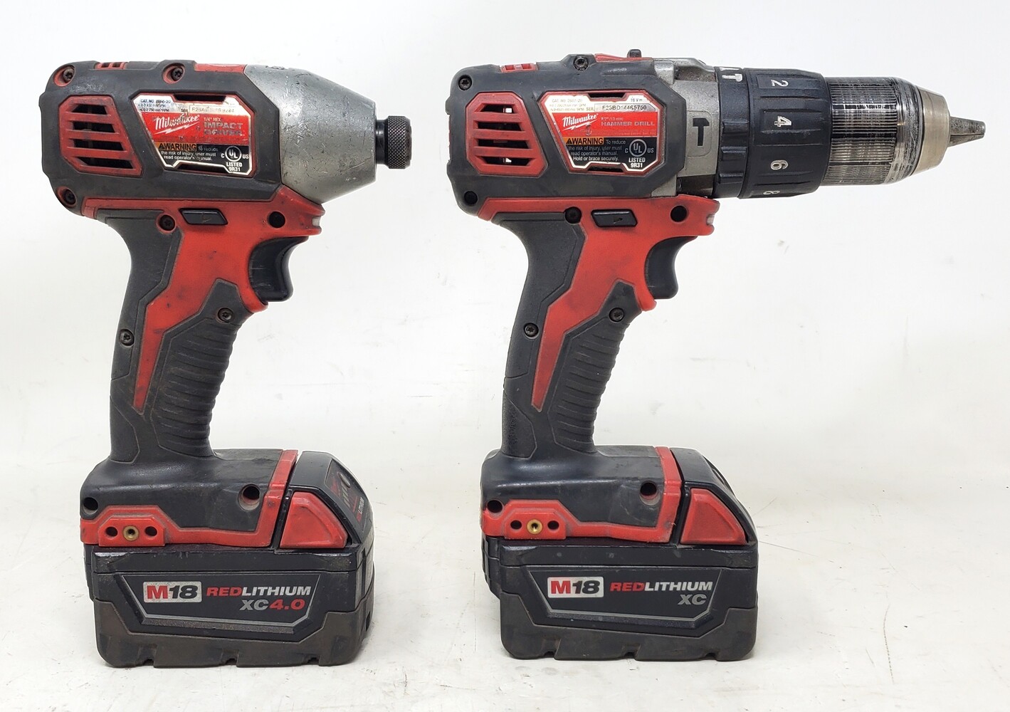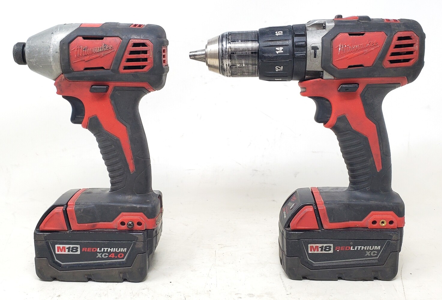 Milwaukee Tool Kit w/ 18V Hammer Drill, 18V Impact Driver, Batteries, Charger, & Bag