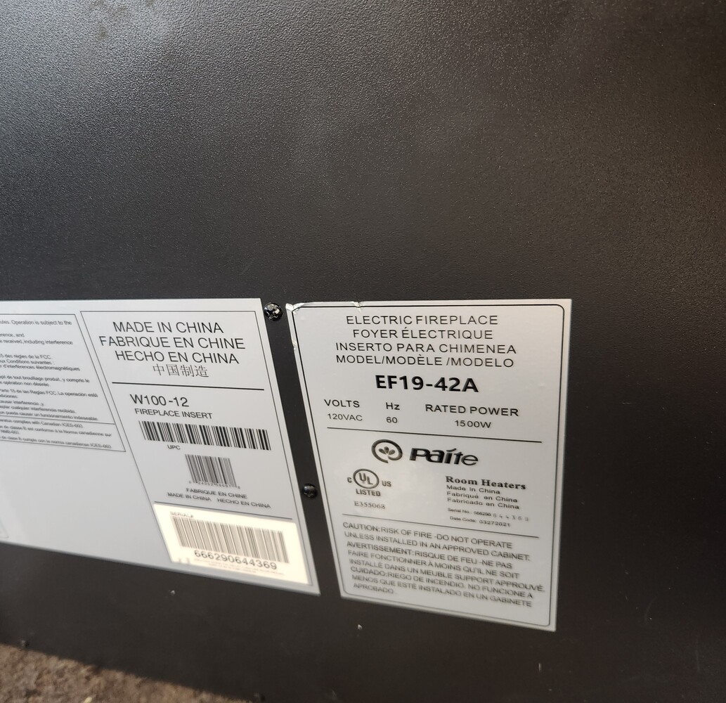 Paite Electric Fireplace Insert w/ BLUETOOTH Speaker 41” L 8.5” W 17” H