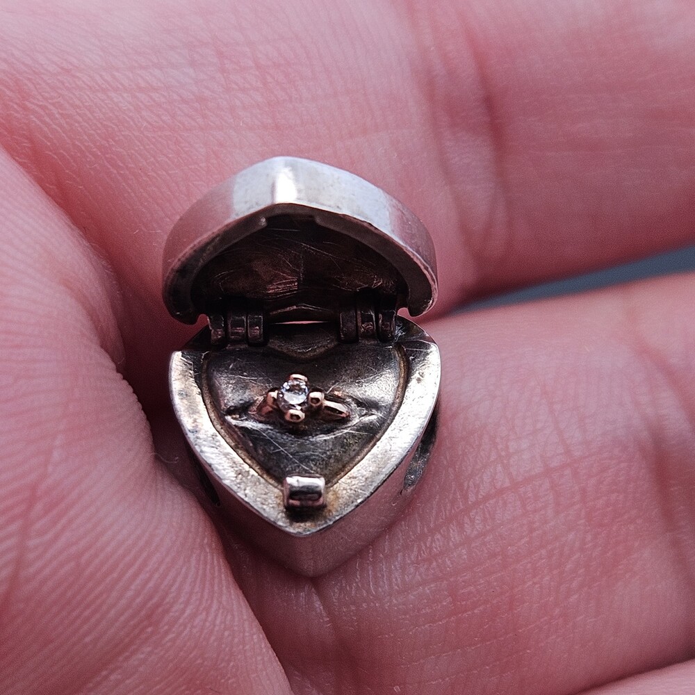 Pandora 925 Sterling Silver 14K Gold Gift from the Heart Ring Box Bead Charm | Money and More