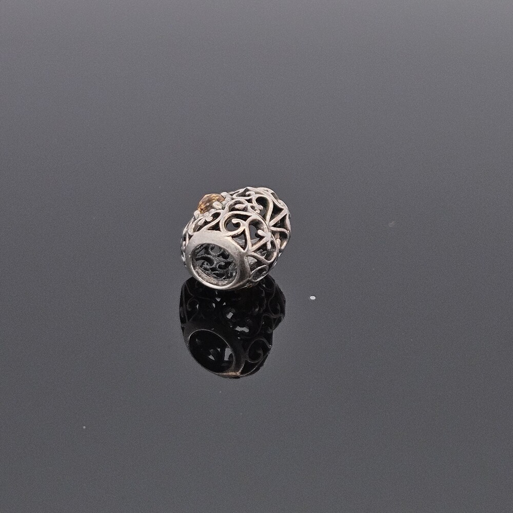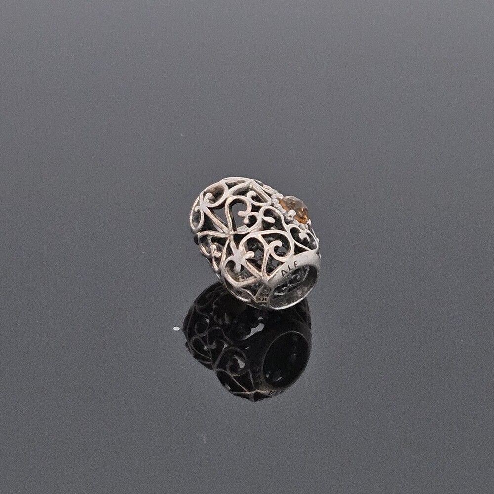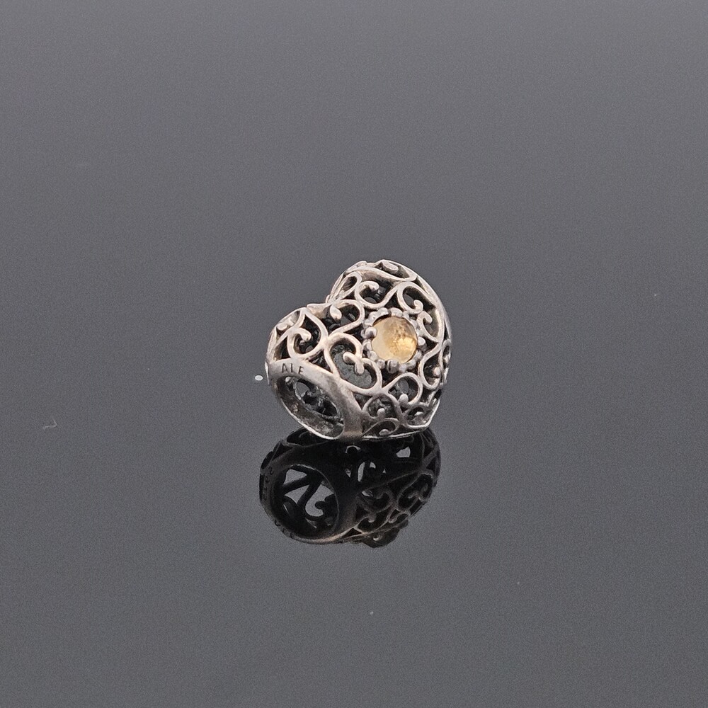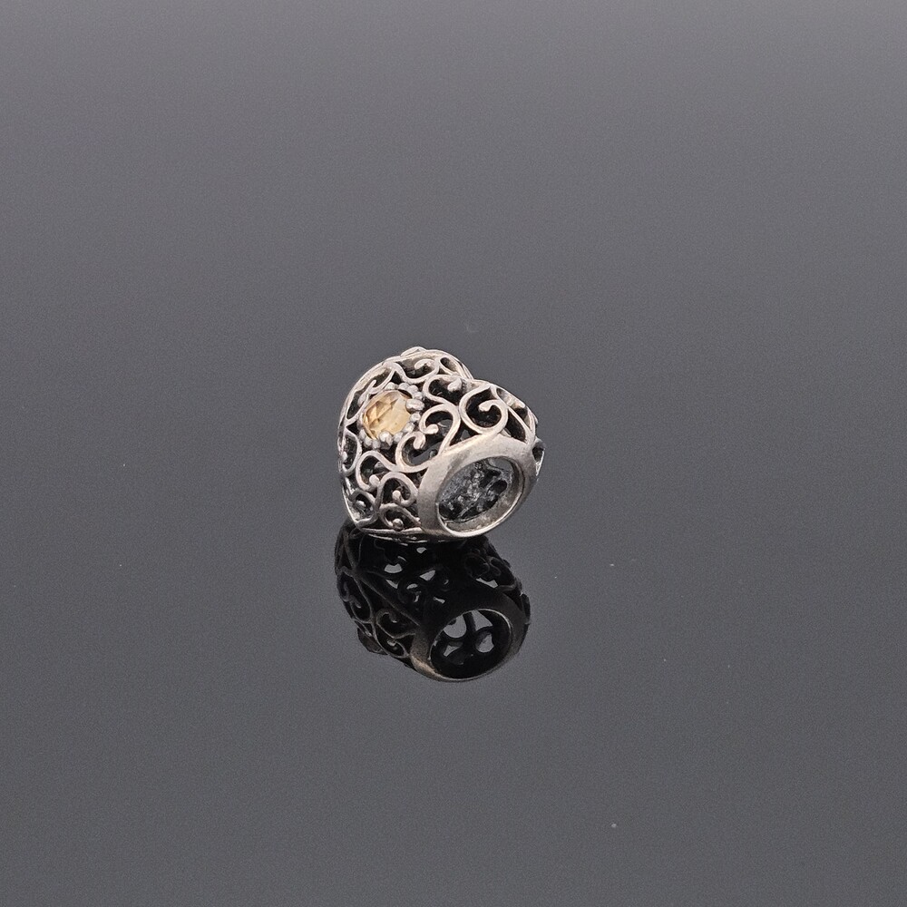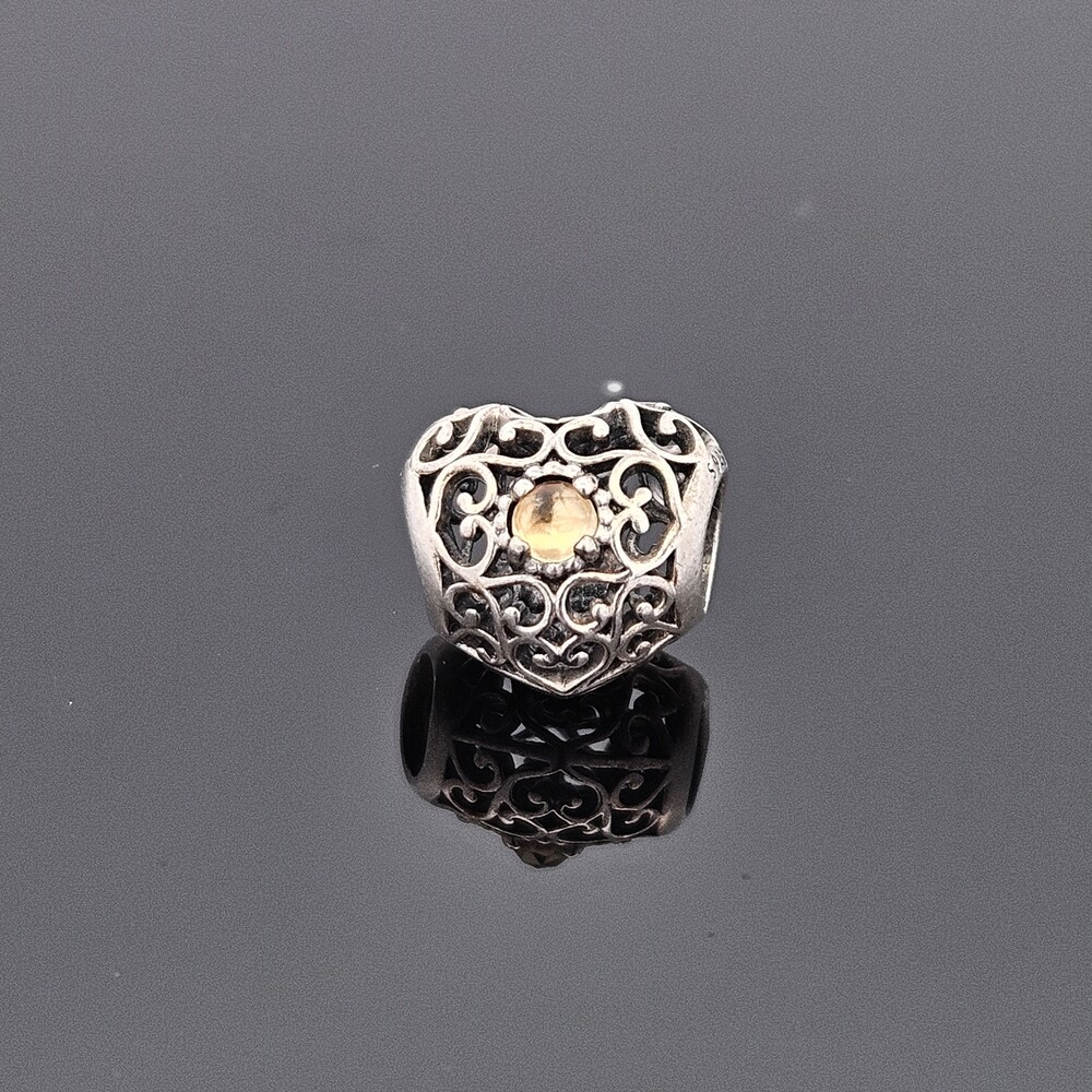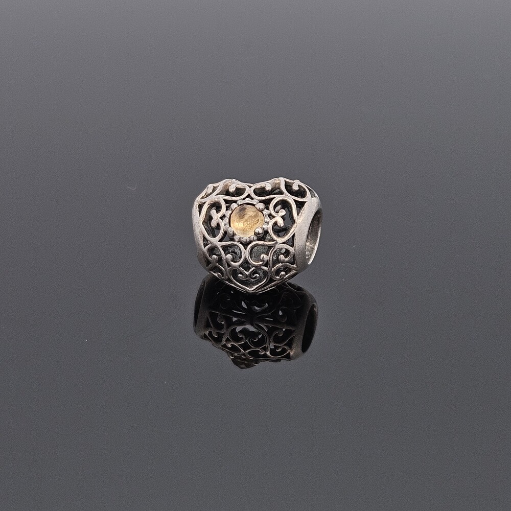 Pandora 925 Sterling Silver Openwork Citrine Scroll Heart Charm Bead | Money and More