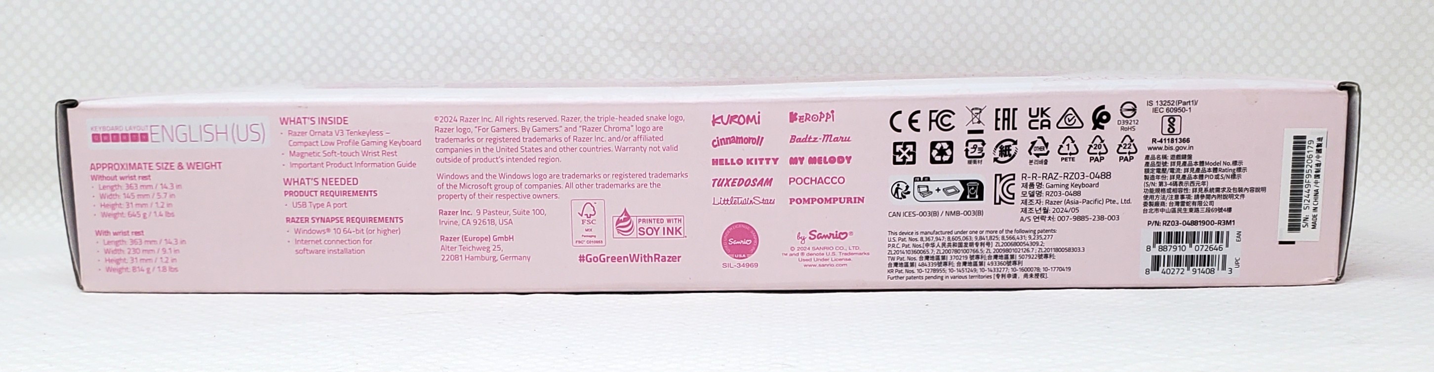 Razer Ornata V3 Tenkeyless Gaming Keyboard - Hello Kitty Limited Edition - NEW!