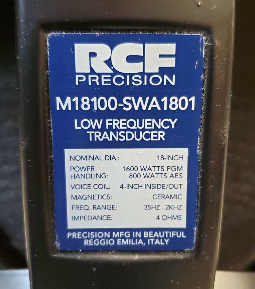 RCF Precision M18100-SWA1801 Low Frequency 18" Transducer