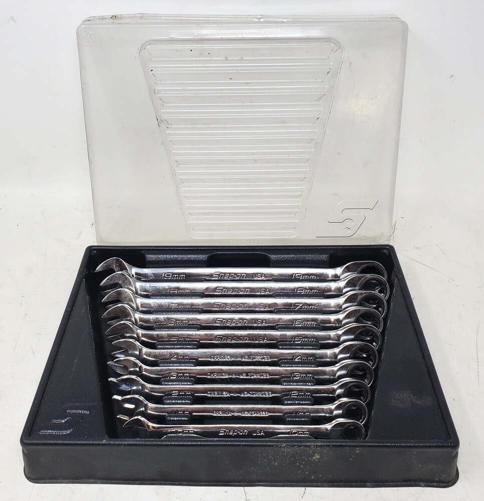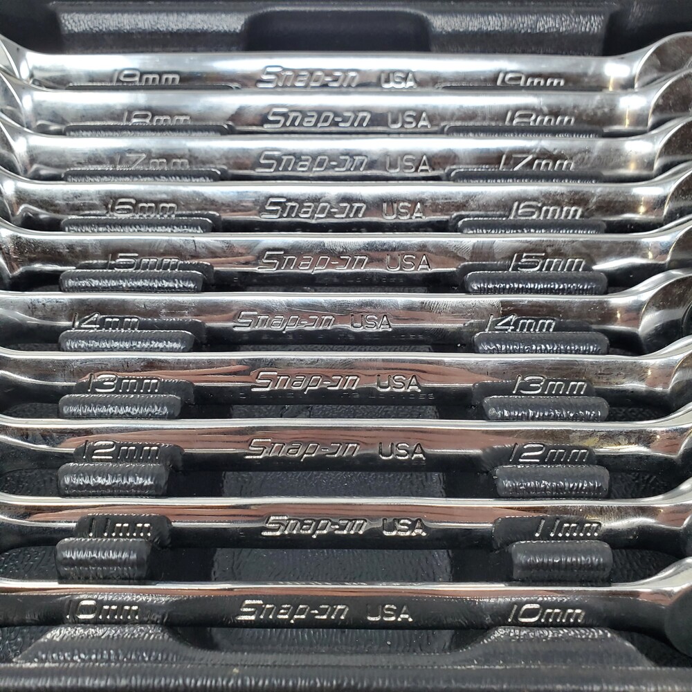 Snap-On 10pc Metric Flank Non-Reversible Ratcheting Combo Wrench Set - OXRM710A