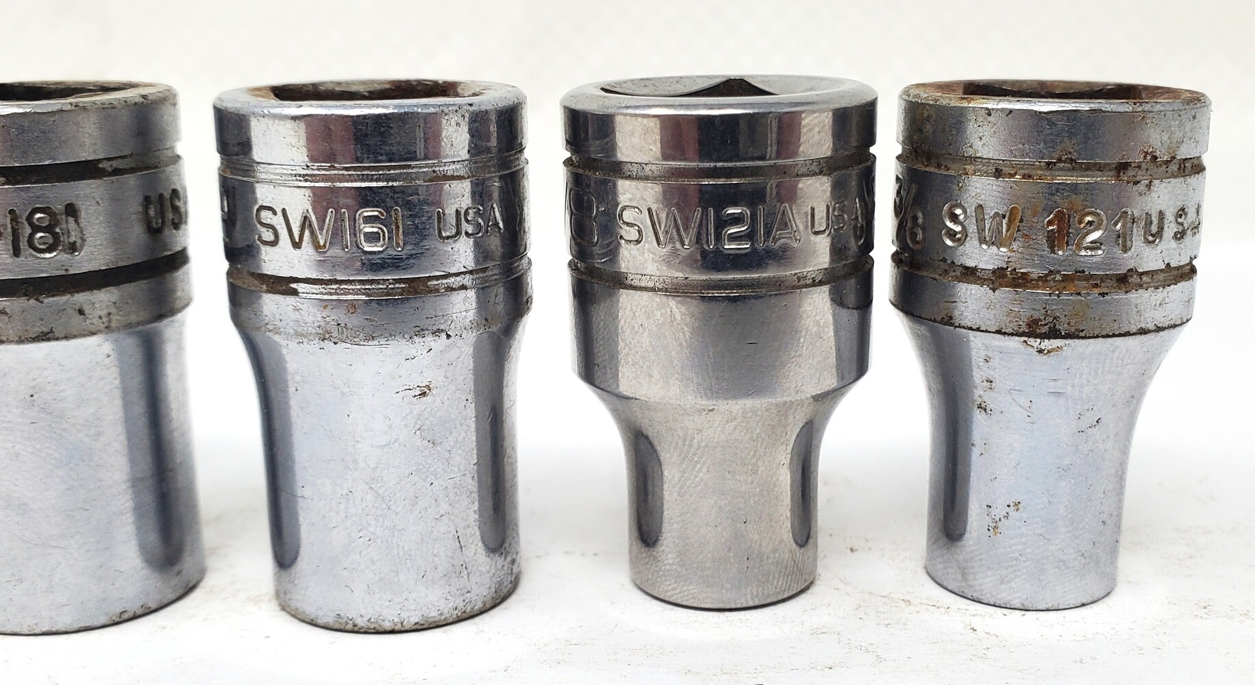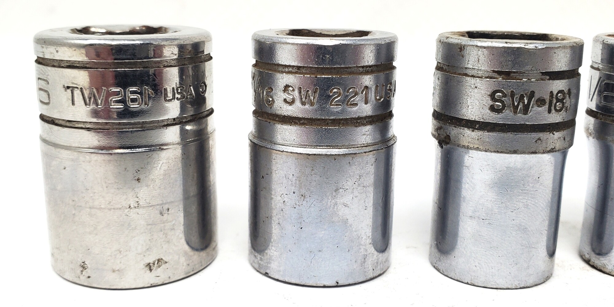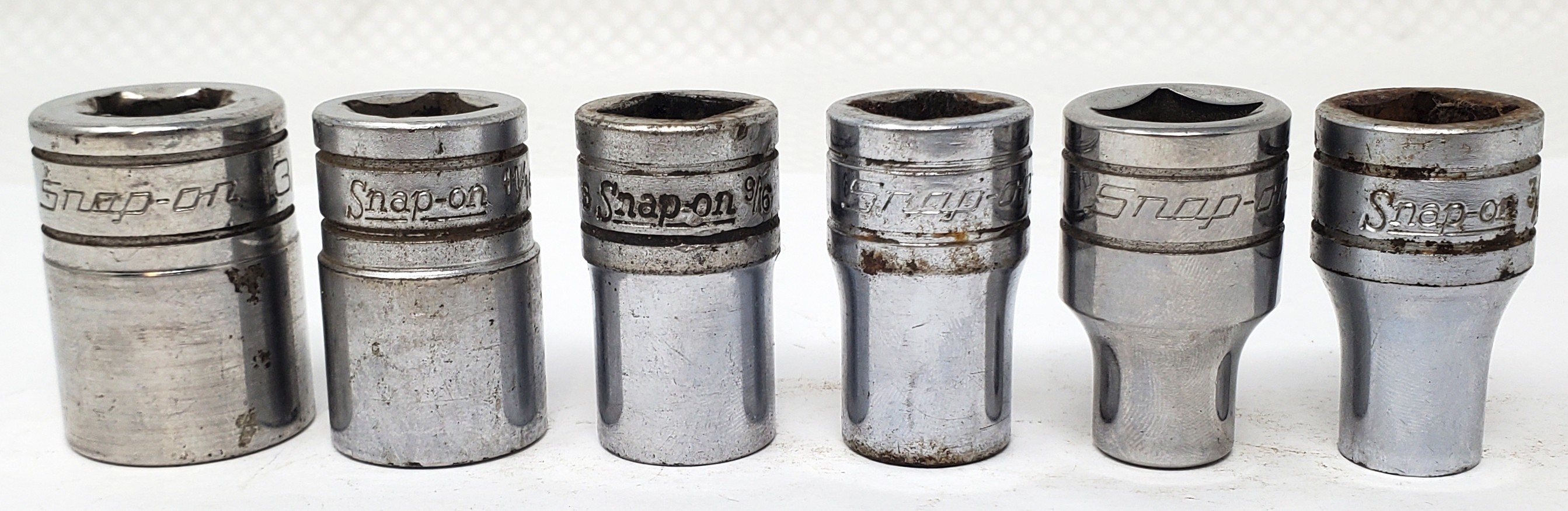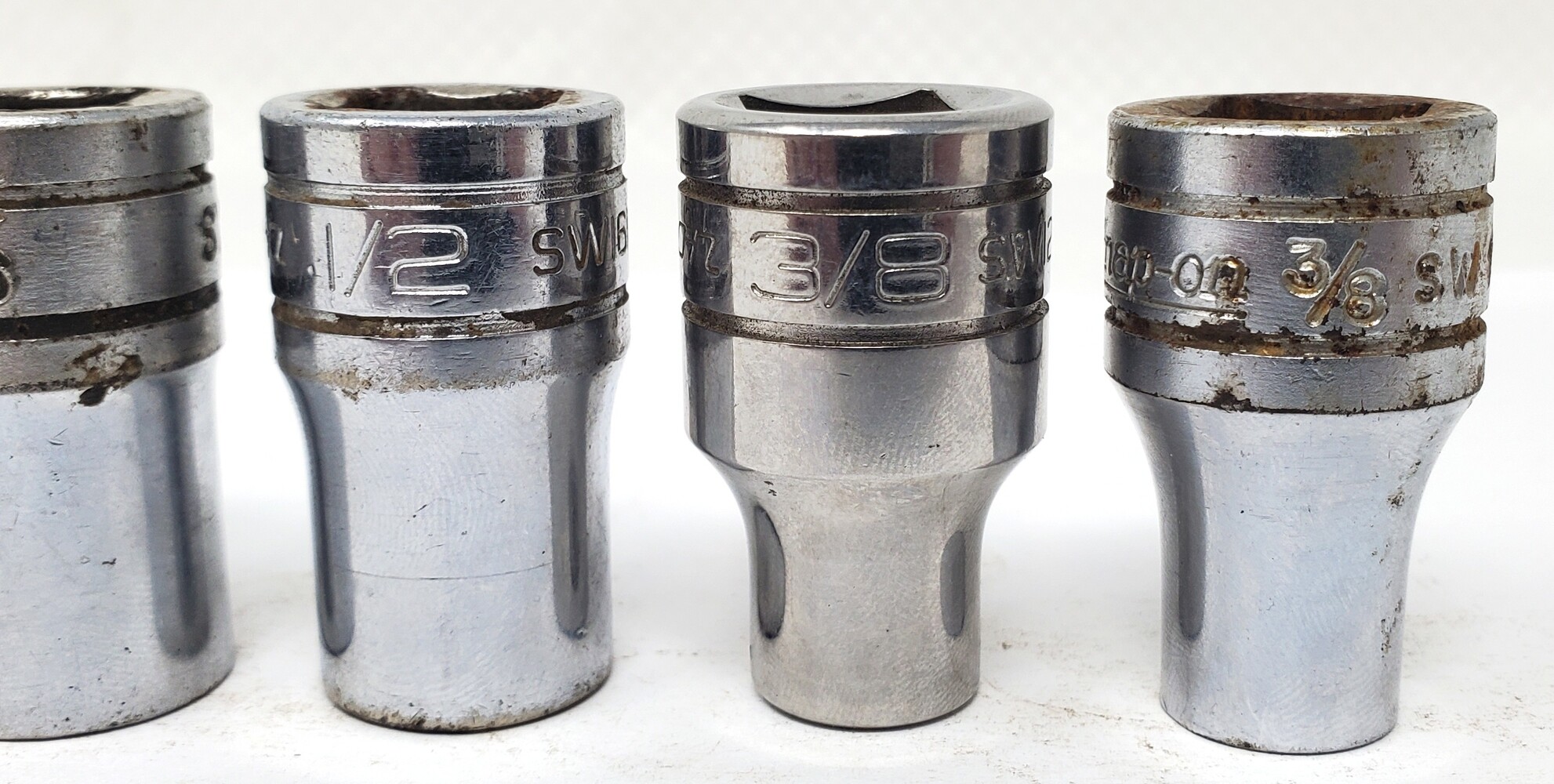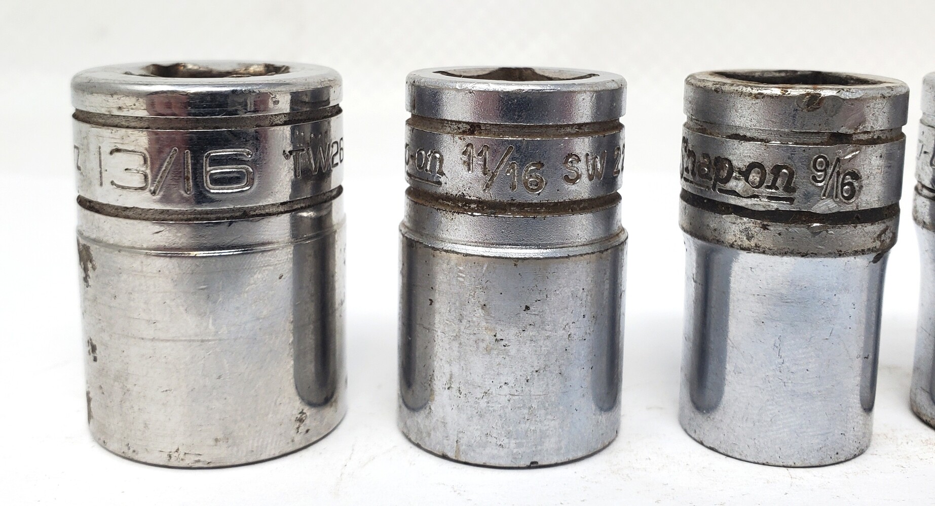 Snap-On 1/2" Drive Lot Of 6 Sockets - 12 & 6pt - 13/16, 11/16, 9/16,1/2, (2) 3/8