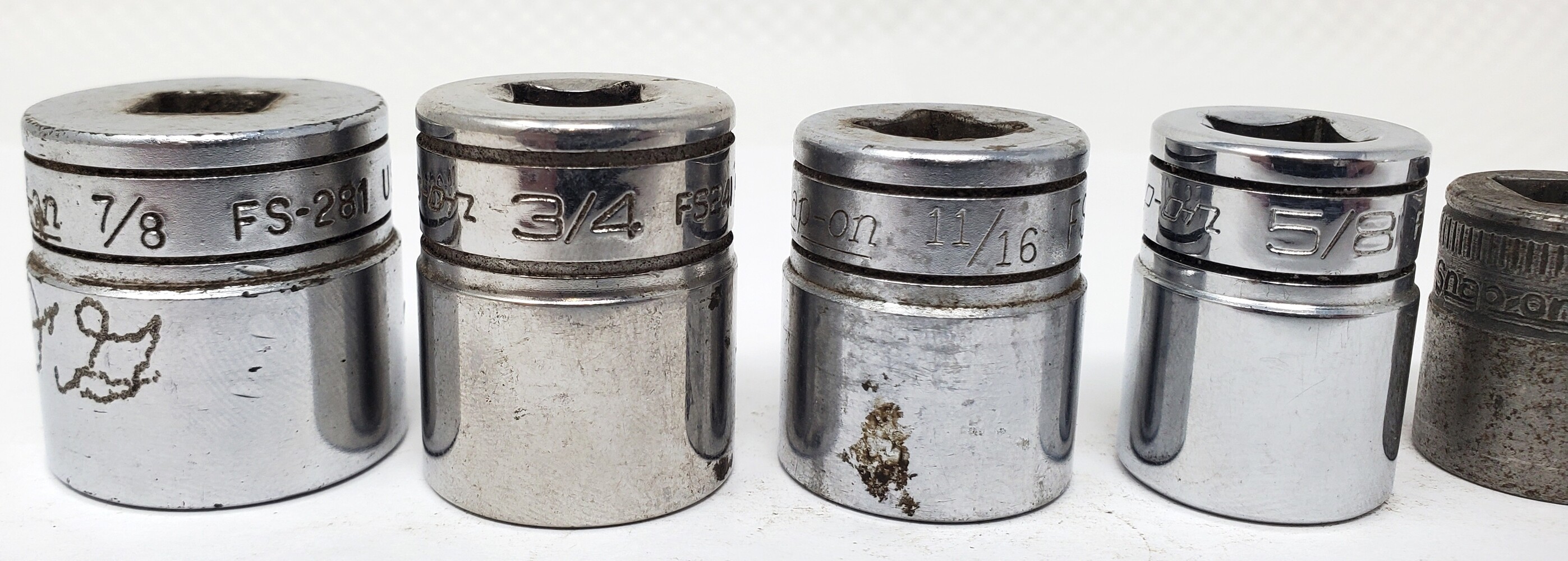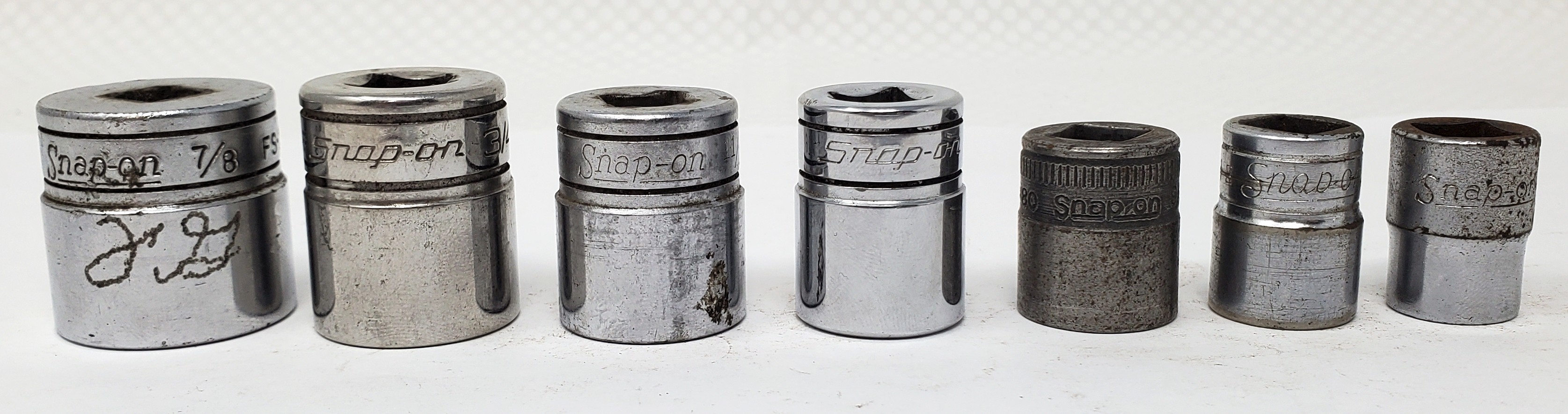 Snap-On 3/8" Sockets - 7/16", 1/2", 9/16", 5/8", 11/16", 3/4", 7/8" - Lot Of 7