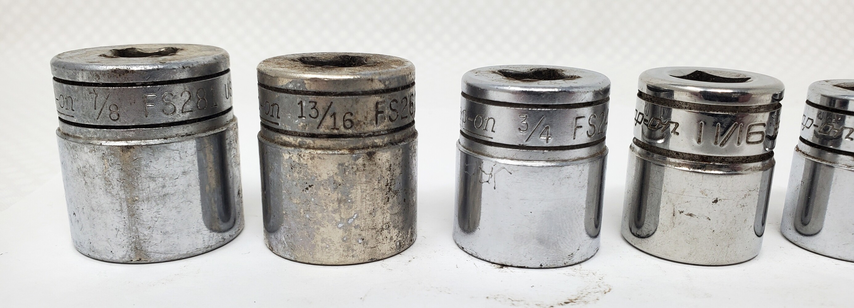 Snap-On SAE 3/8" Drive Sockets - Lot Of 9 - FS141-FS281 (6pt) & FS120 (12pt)