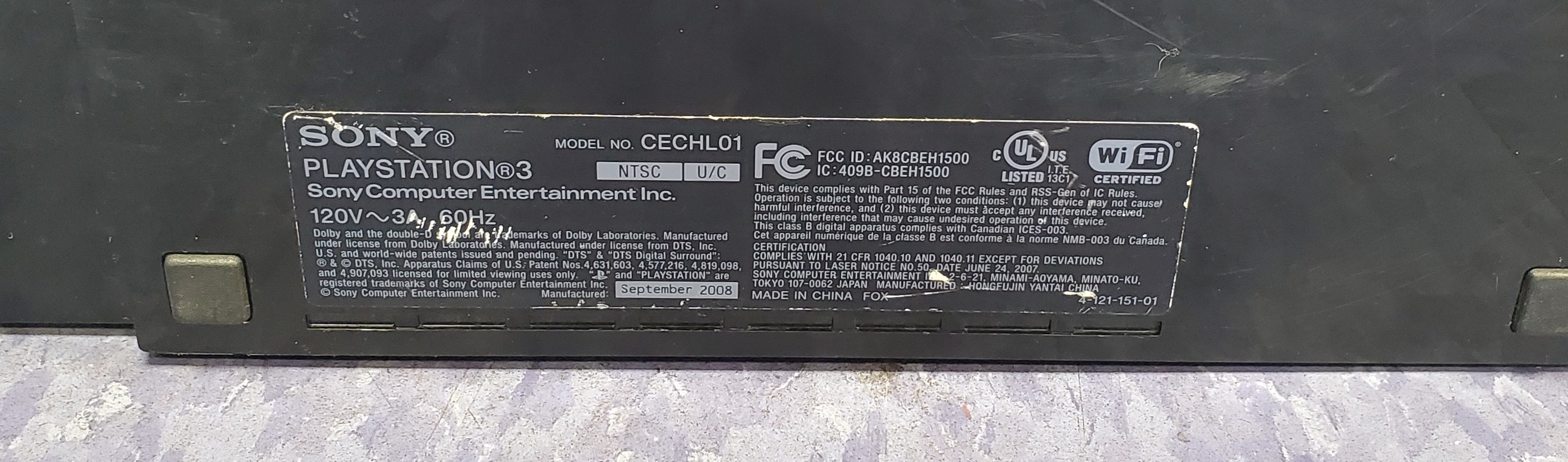 Sony PlayStation 3 (PS3) 80GB Console w/ Cords & Controller - Model CECHL01