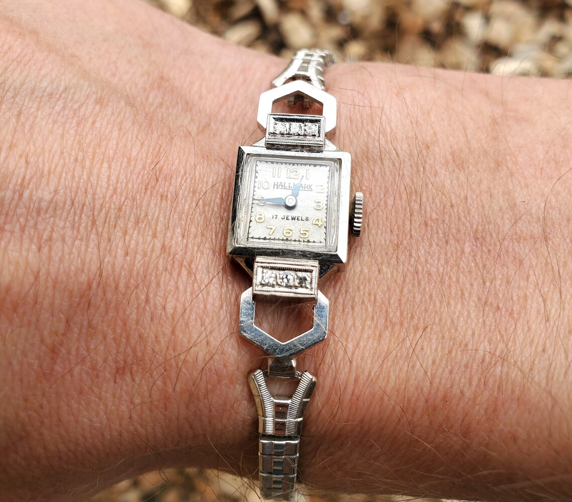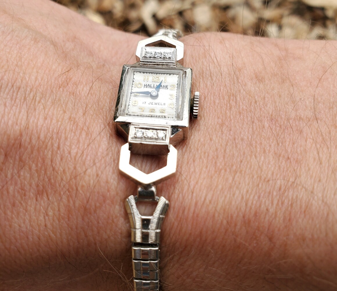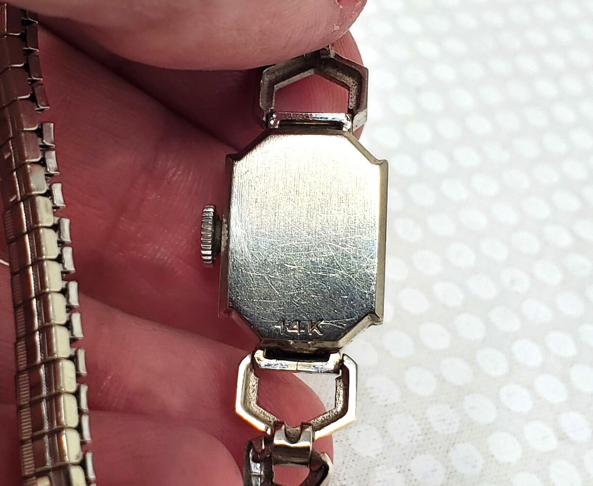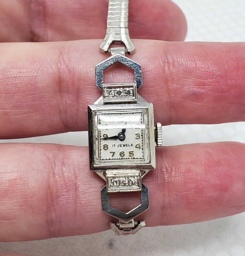 Speidel Hallmark 17 Jewel Yellow & White Gold Vintage Diamond Ladies Watch RUNS