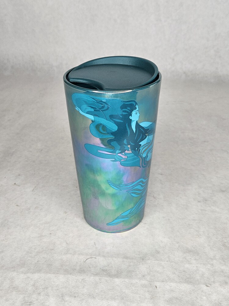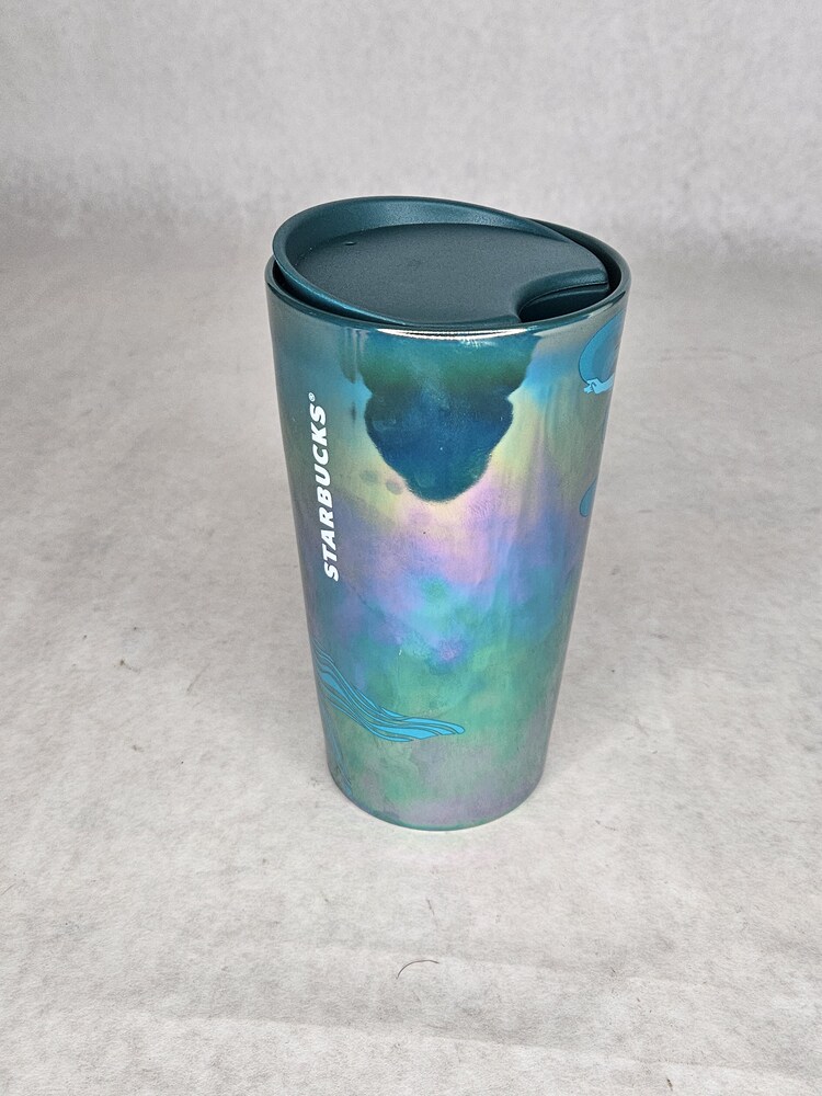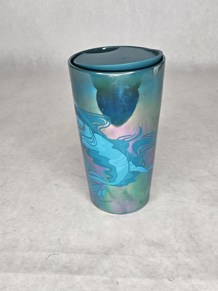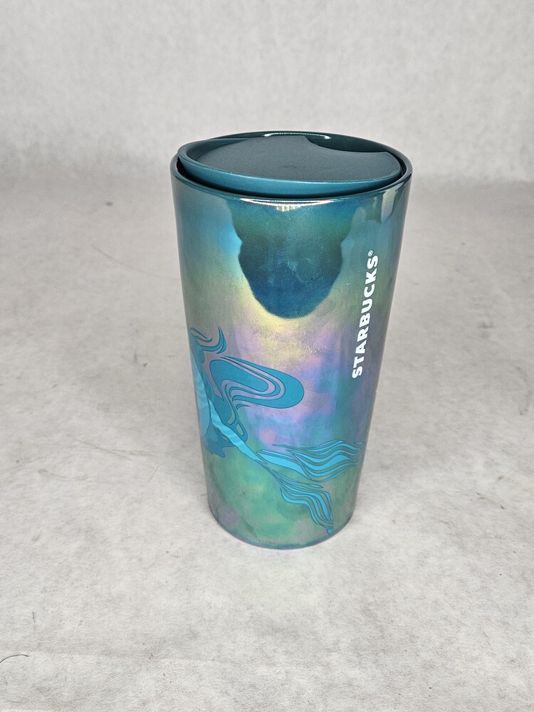 Starbucks Blue Green Siren Logo Iridescent Mermaid Ceramic Coffee Cup with Lid | Money and More